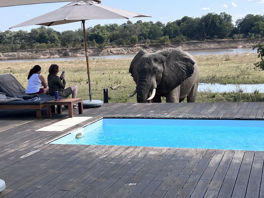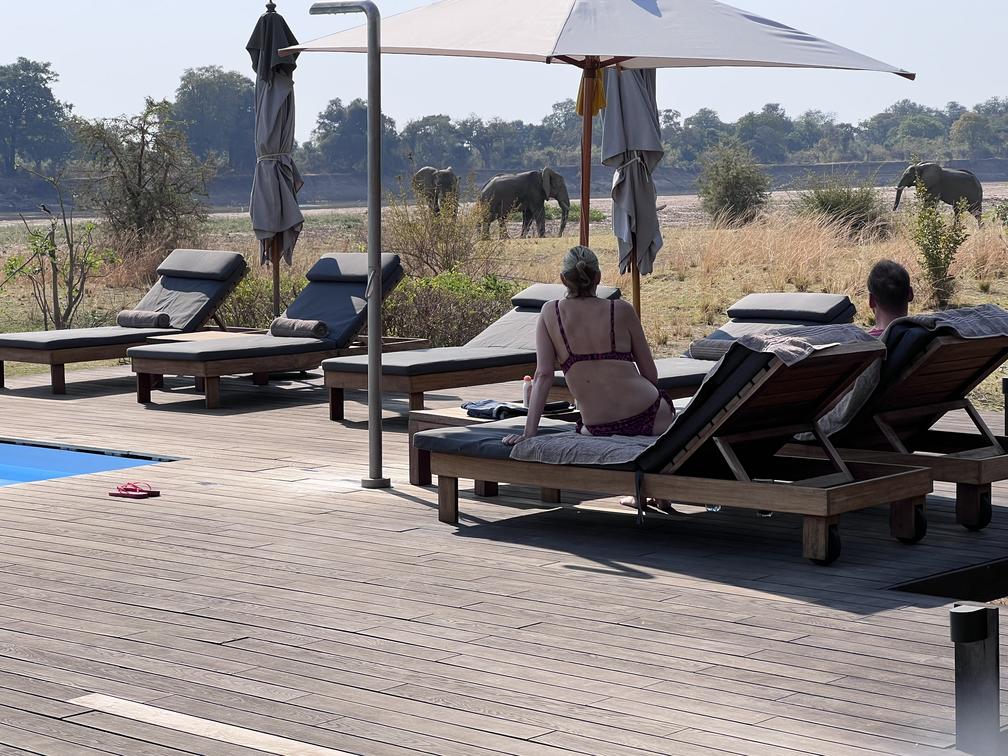 Evening at Chikunto - firepit and pool, Luangwa in backfround