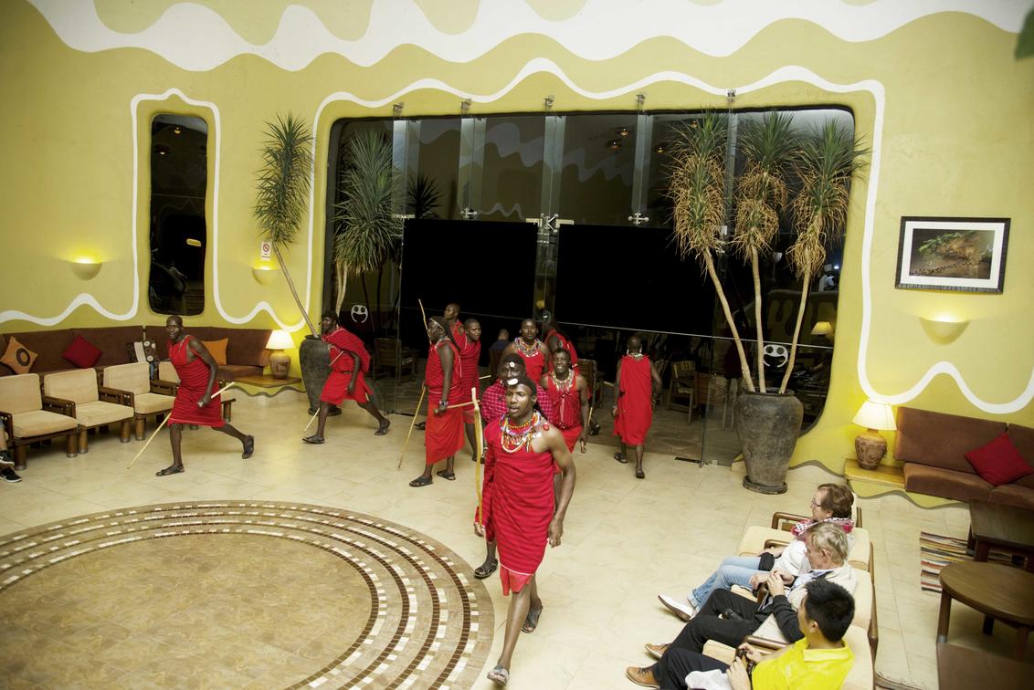 Mara Serena Safari Lodge's reception entrance boasts an impressive architecture and design, featuring a grand entrance with a thatched roof and a spacious lobby decorated with African-inspired artwork and furnishings. Guests are welcomed by friendly staff and a refreshing drink upon arrival.