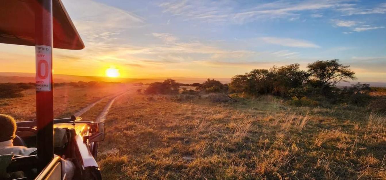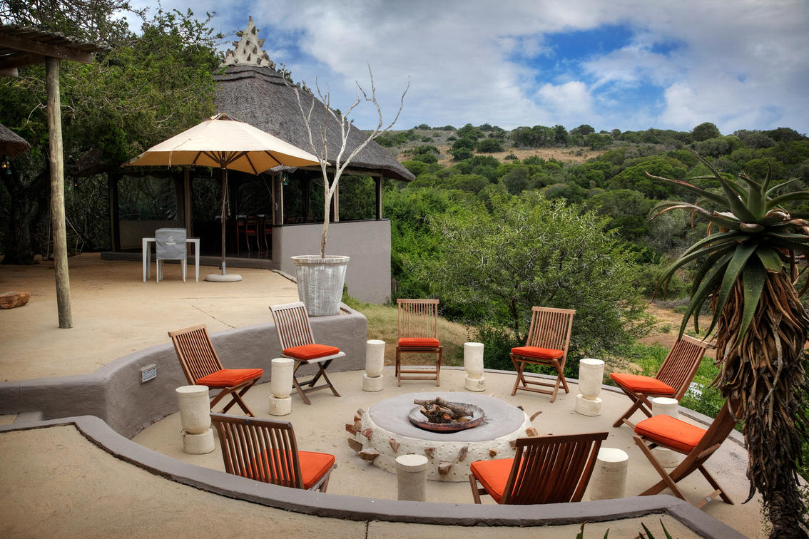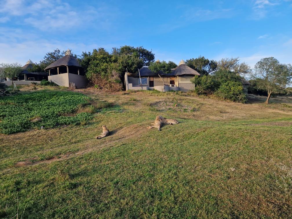 Three Cheetah Males in front of Amakhala Safari Lodge