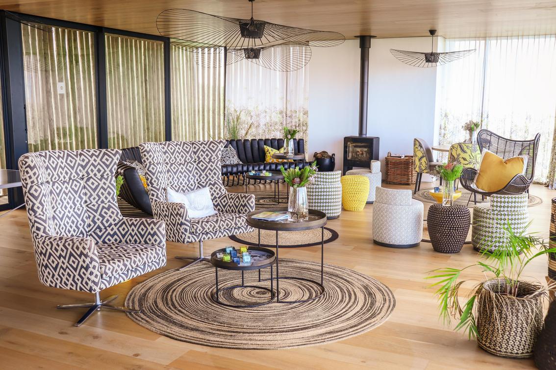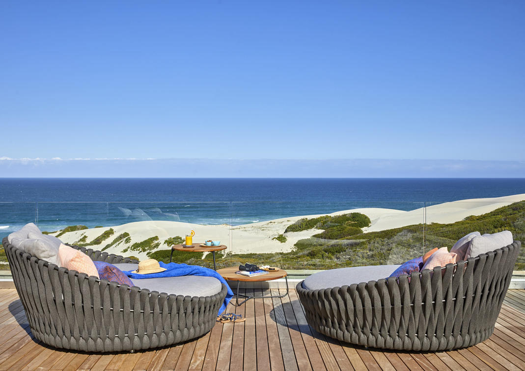 Rooftop terrace with a view of the dunes and the ocean at Morukuru Beach Lodge