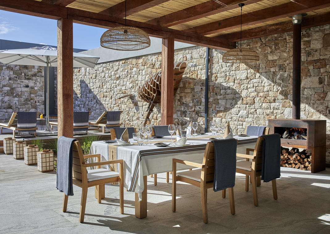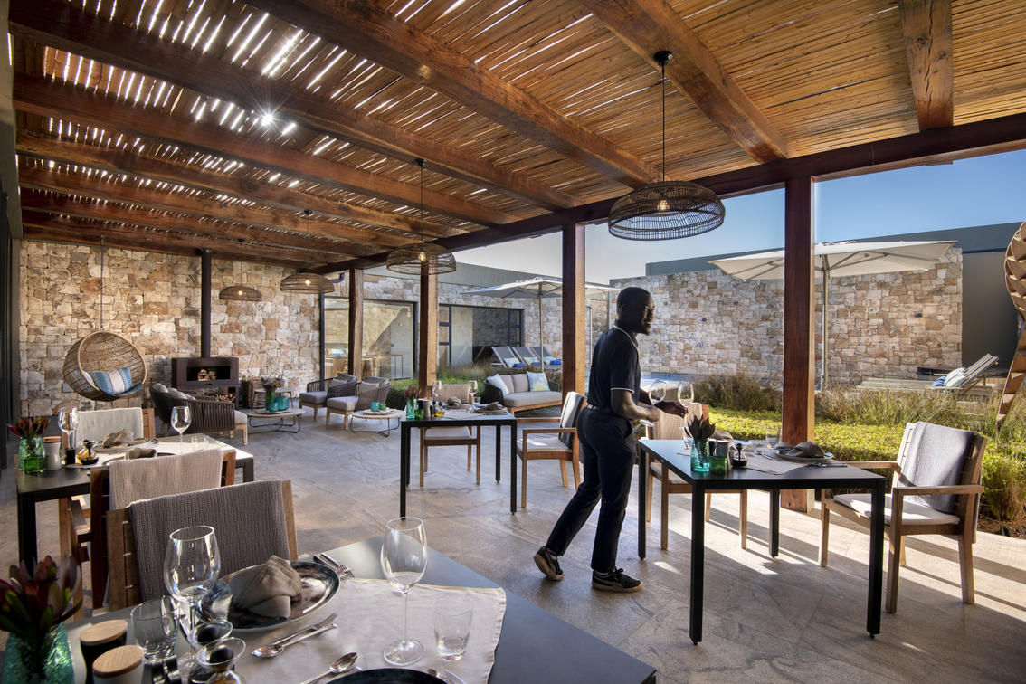 The sheltered courtyard at Morukuru Beach Lodge offers additional seating for al-fresco meals