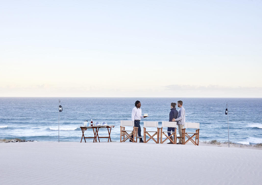 Sundowners in the sand dunes at Morukuru Beach Lodge