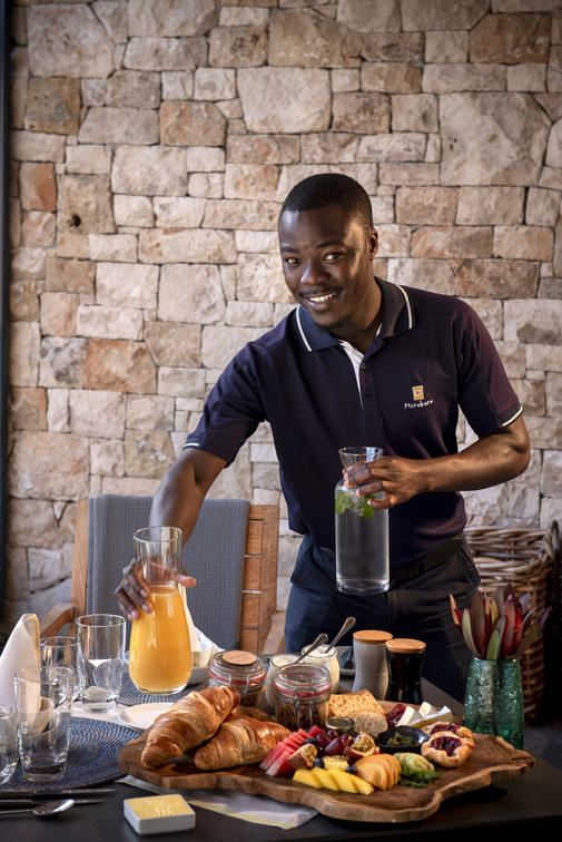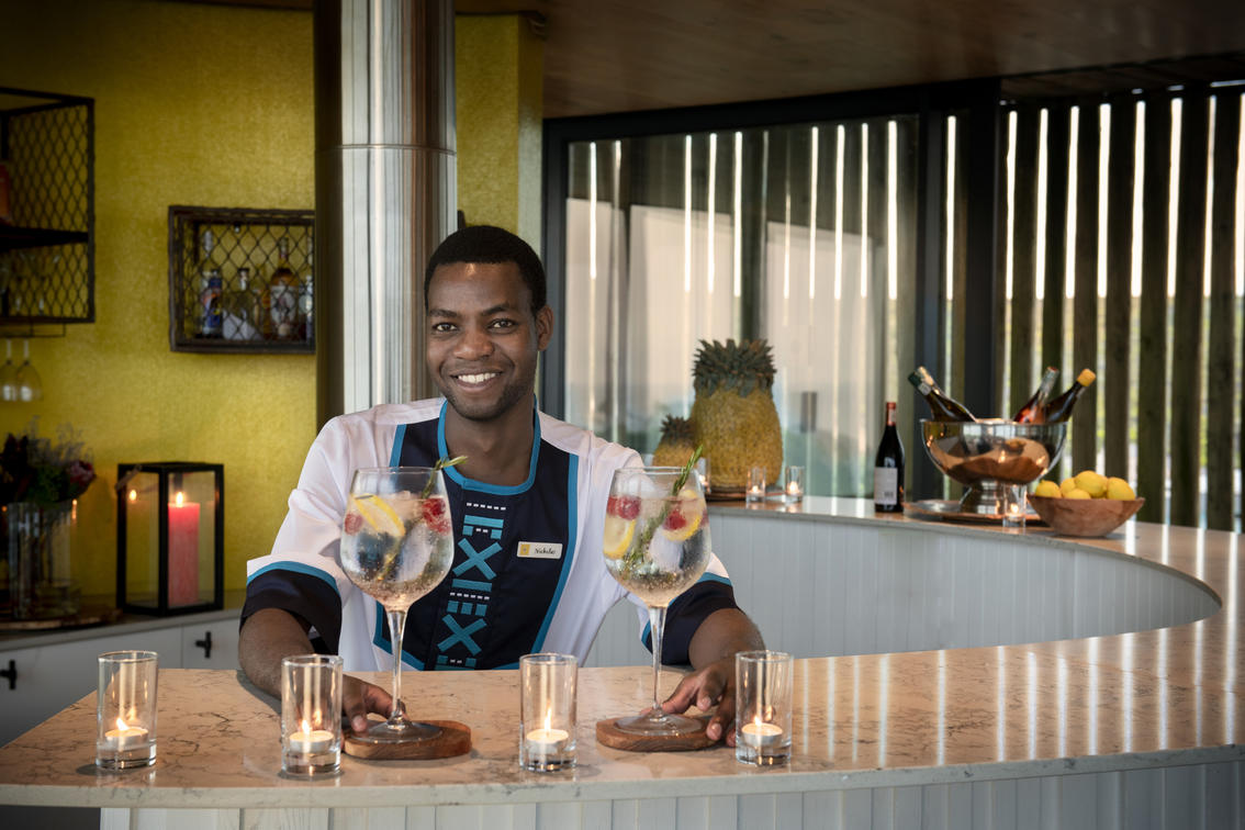 Butler Nicholas serves a drink at Morukuru Beach Lodge