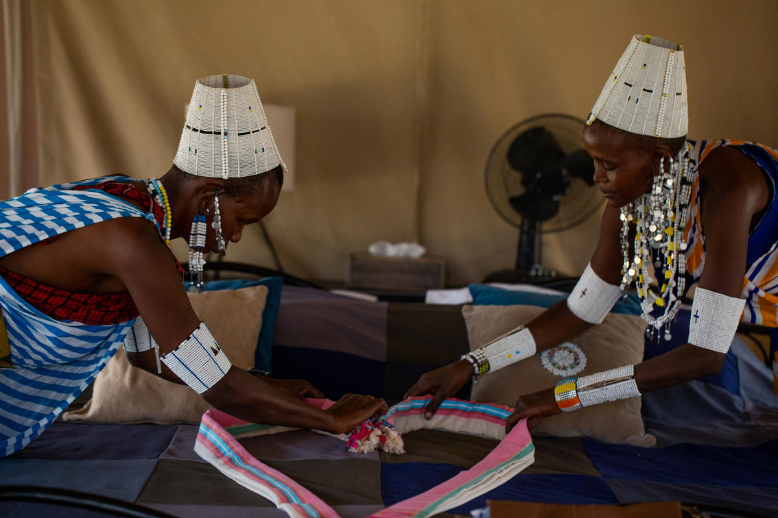Maasai Mamas making the rooms Locally employed Maasai Mamas help us lovingly prepare the rooms