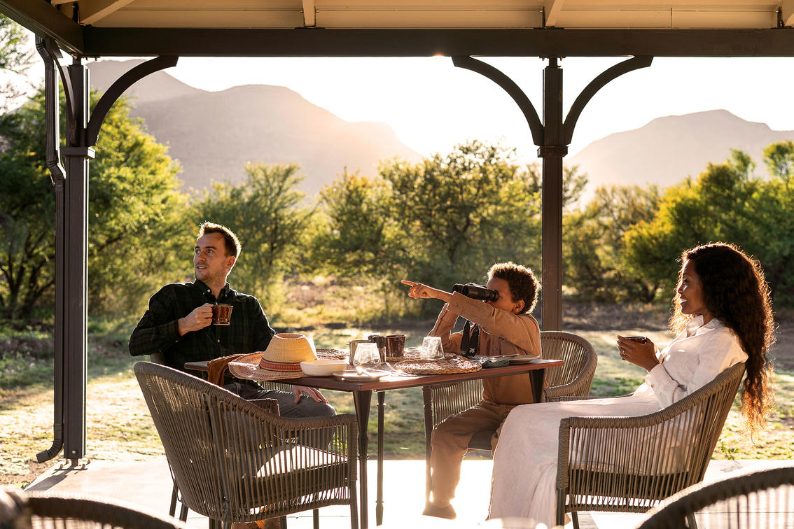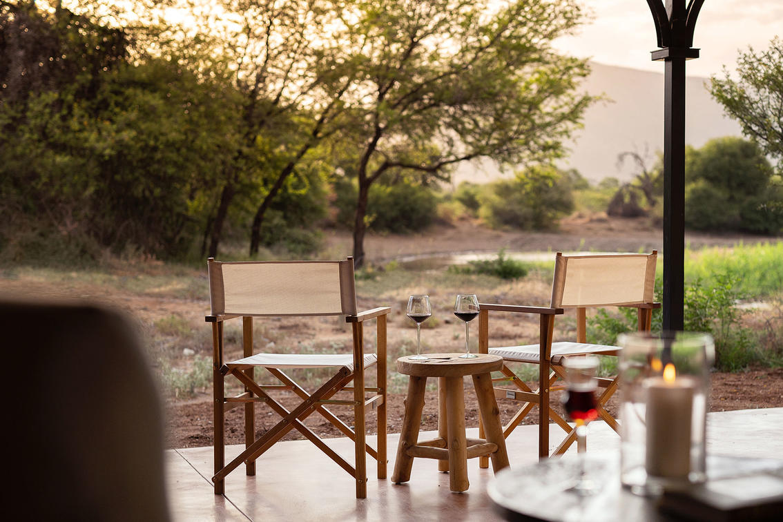 The Karoo Suite’s outdoor seating area offers a tranquil spot to relax, with comfortable furnishings and uninterrupted views of the surrounding landscape and wildlife.