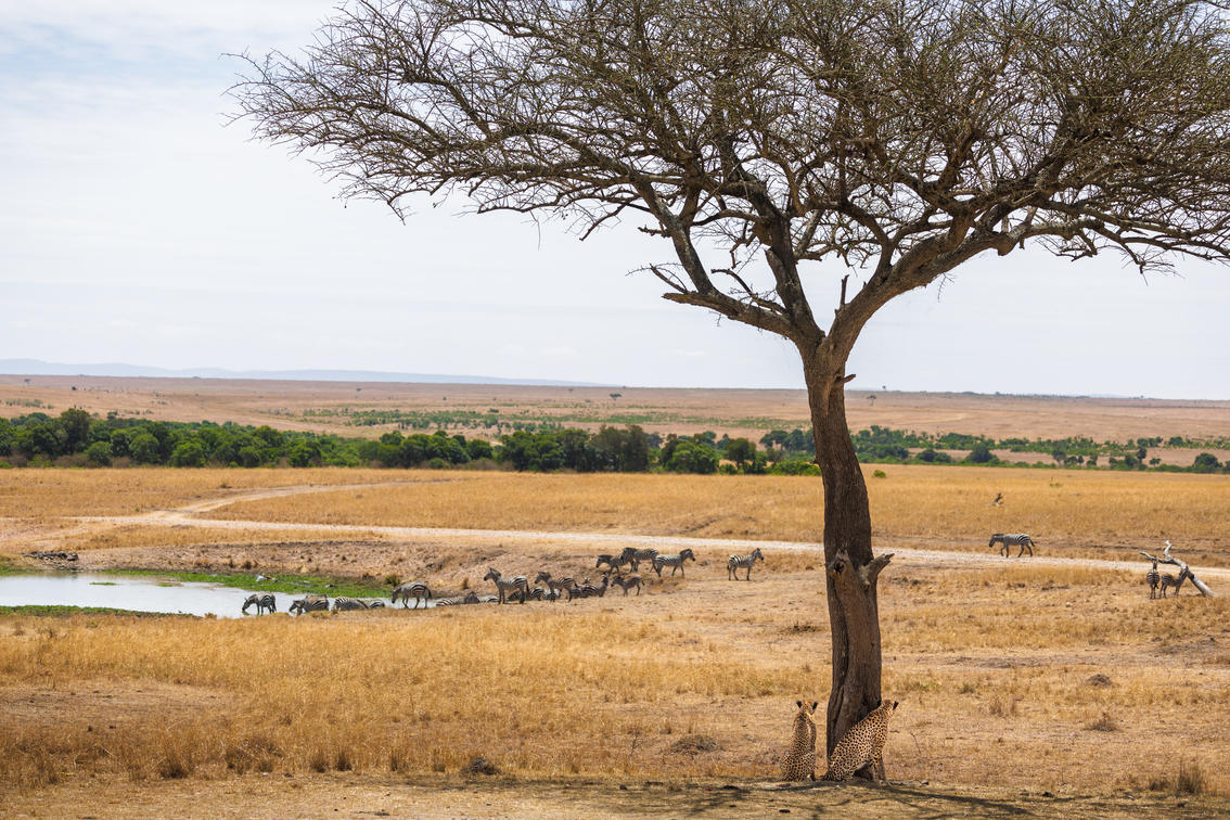 Cheetahs stalking prey at the waterhole
