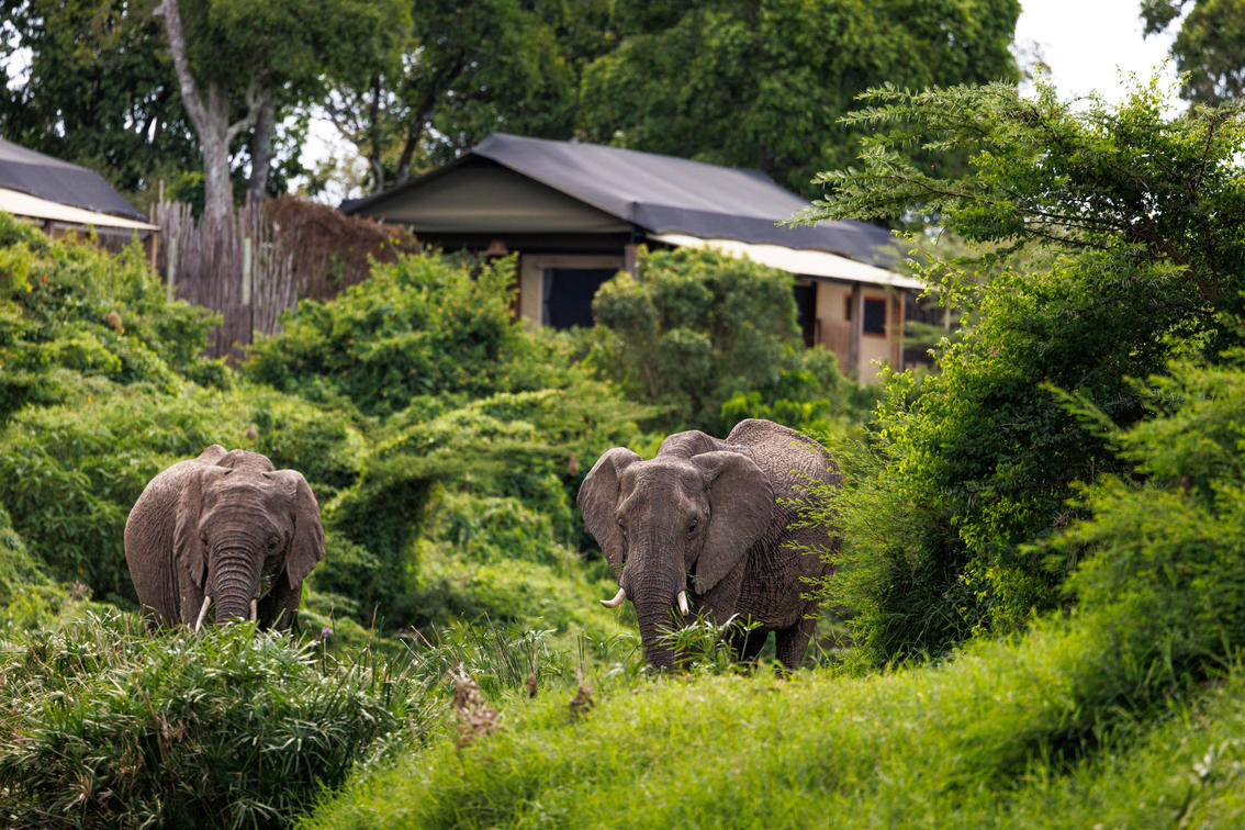 Elephants grazing by the Suites