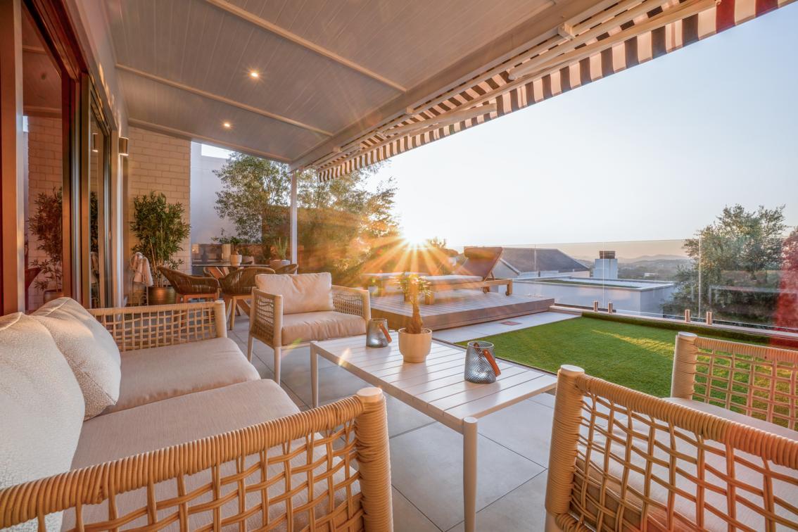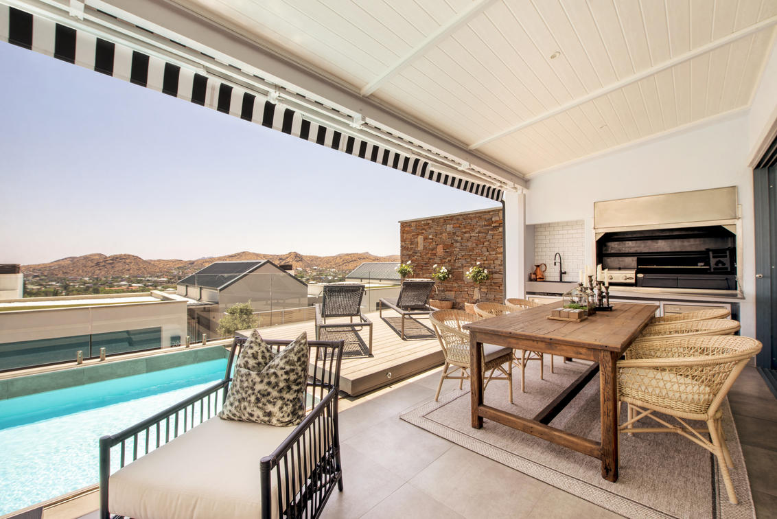 Balcony with private pool, barbecue facilities and 6-seater dining table