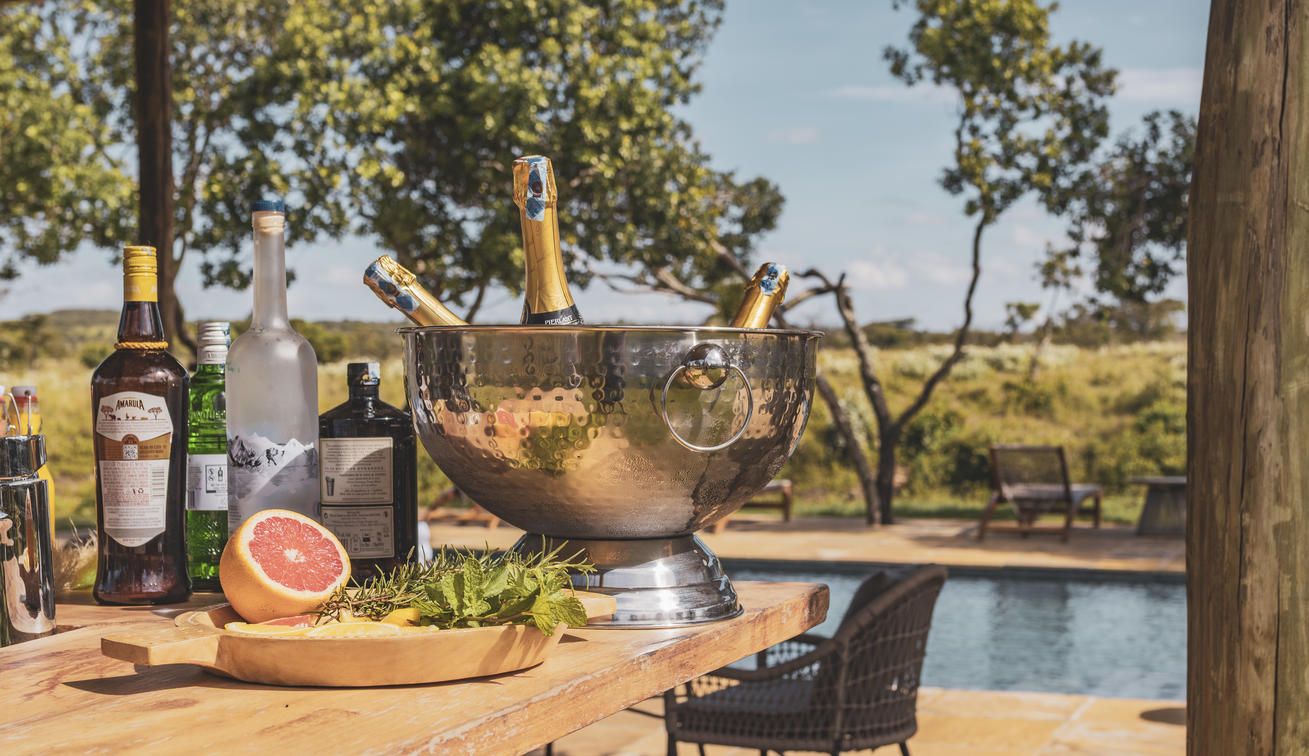 A pristine pool that blends in with nature and overlooks the Savannah. Perfect spot for a sundowner. WIFI and a bar lounge available.