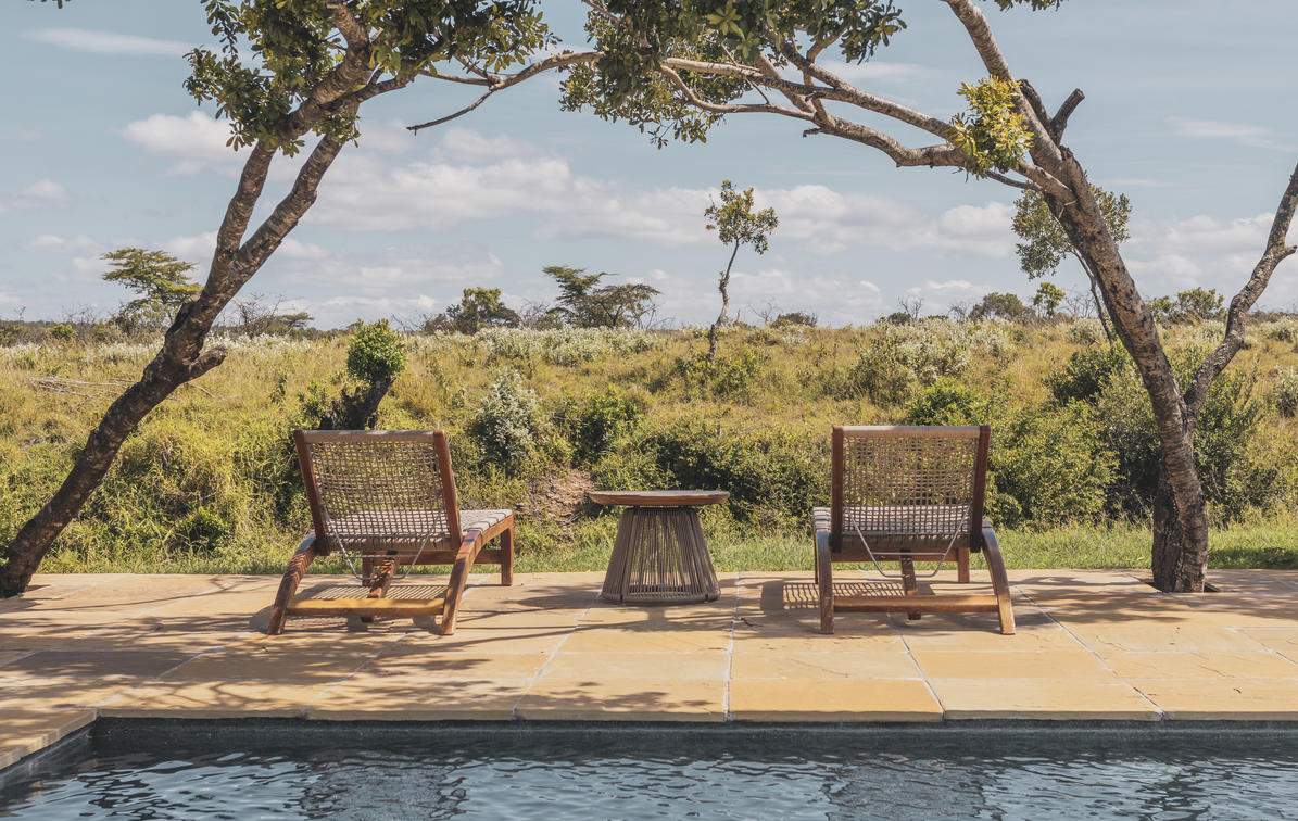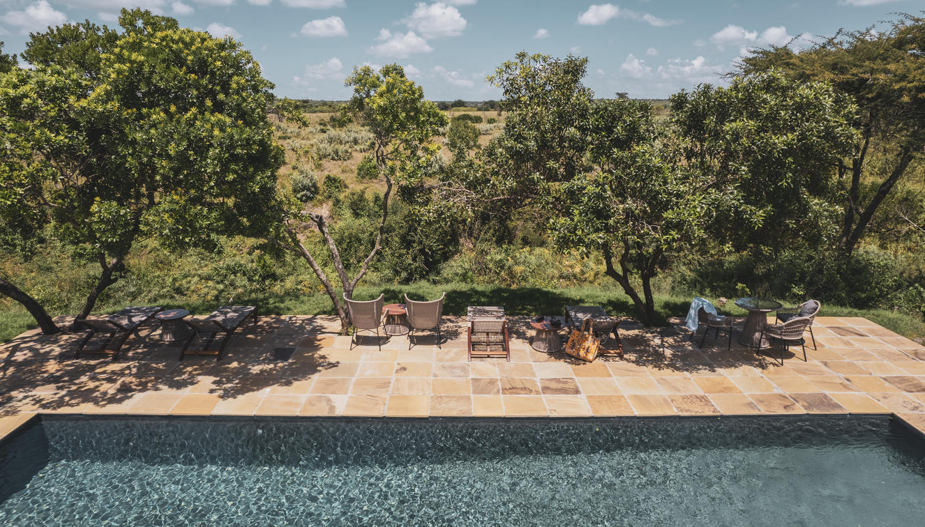 A pristine pool that blends in with nature and overlooks the Savannah. Perfect spot for a sundowner.