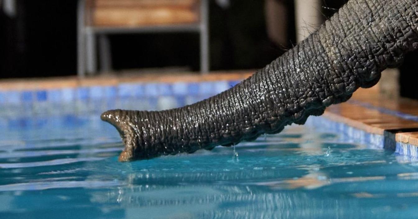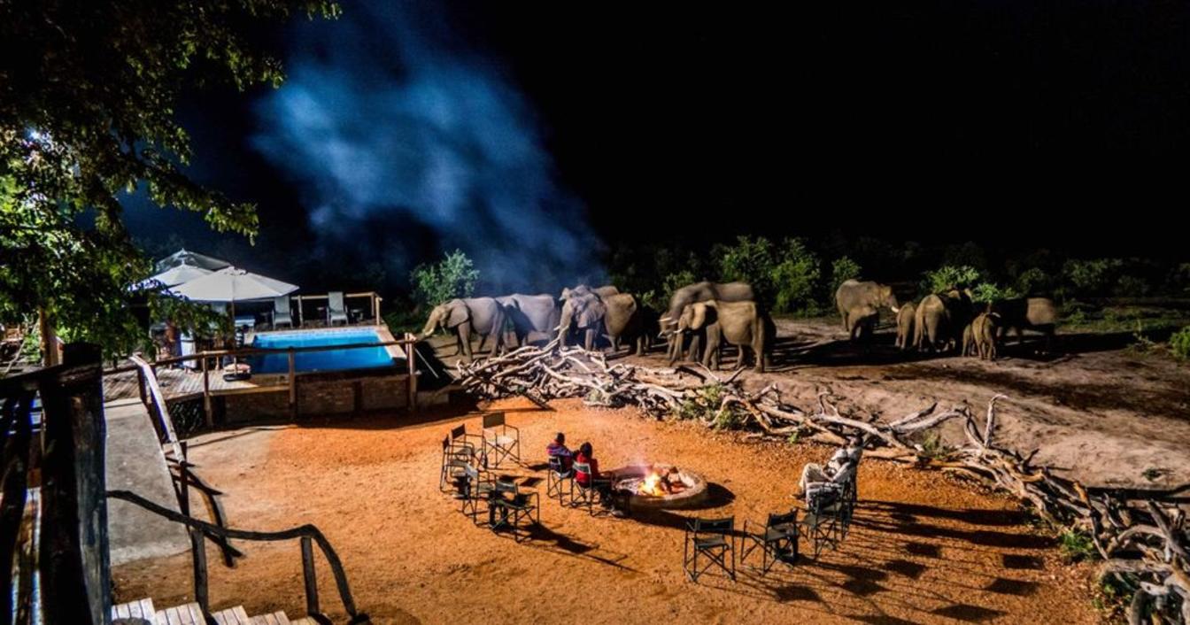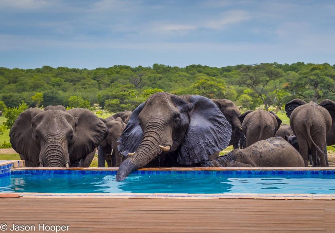 Iganyana Tented Camp - Elephant at pool.