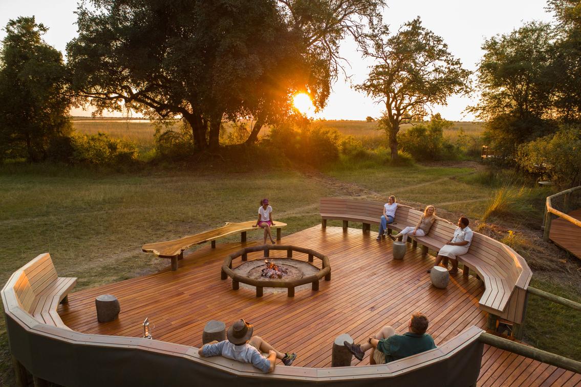 Aerial view of Camp Moremi on the edge of the Xakanaxa Lagoon