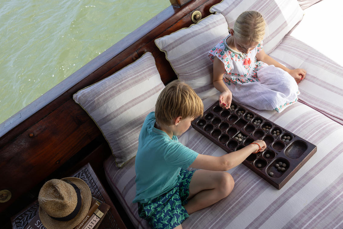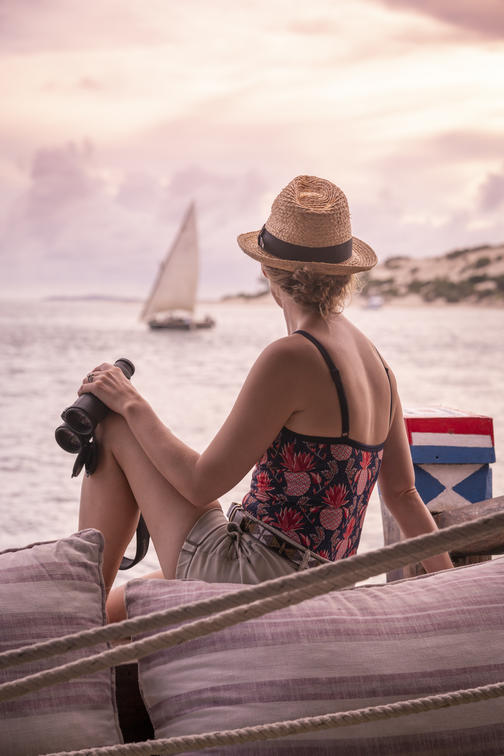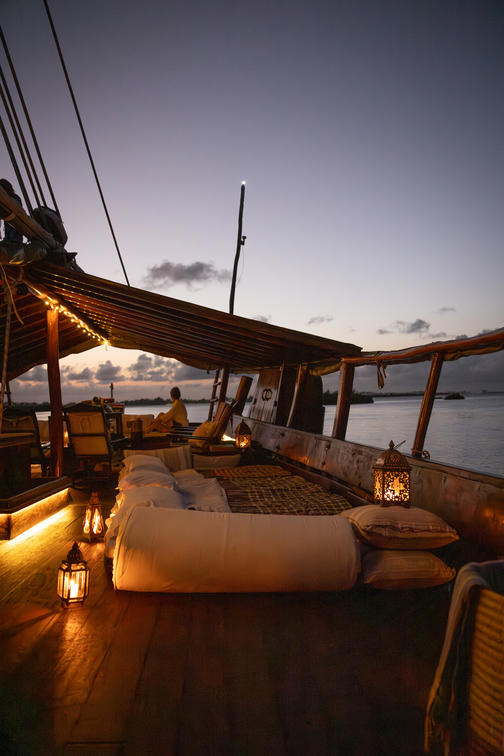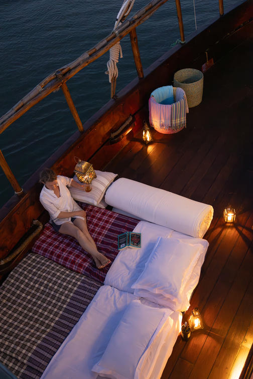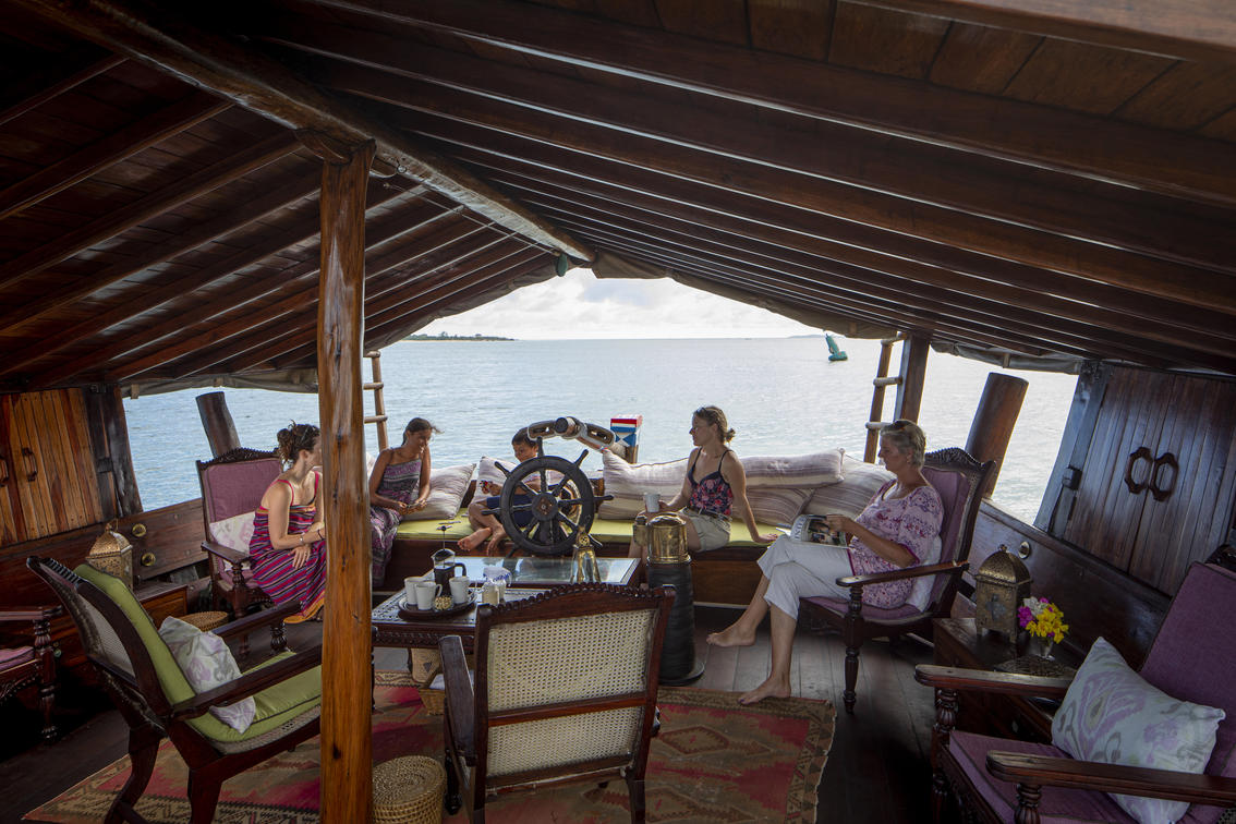 Relaxing in the shade at the stern of Tusitiri Dhow.