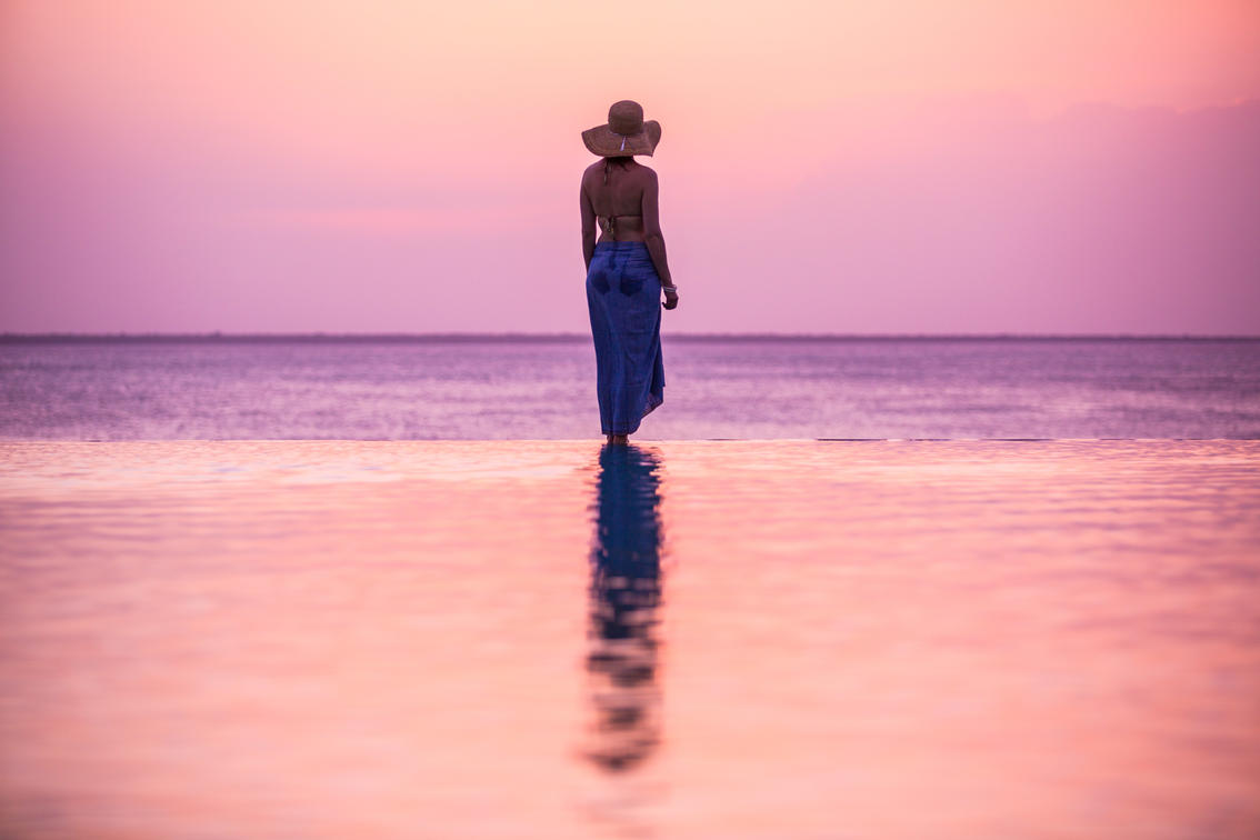 Picturesque infinity pool at dusk