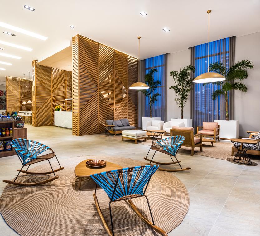 Credit: The entrance, front desk and lobby are large spaces where guests can move comfortably, it has two lounges and coffe tables whit daily newspapers and magazines