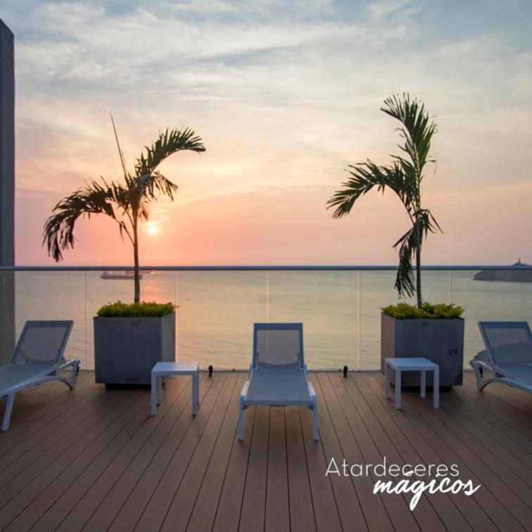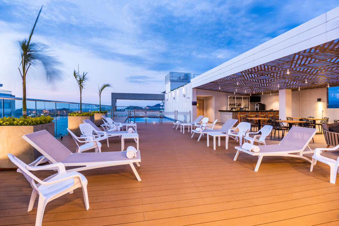The Pool is exclusively for our guests, is located on the Seventeenth floor of the hotel, features a wonderful view of the city of Santa Marta, sun chairs, toilets and showers.
