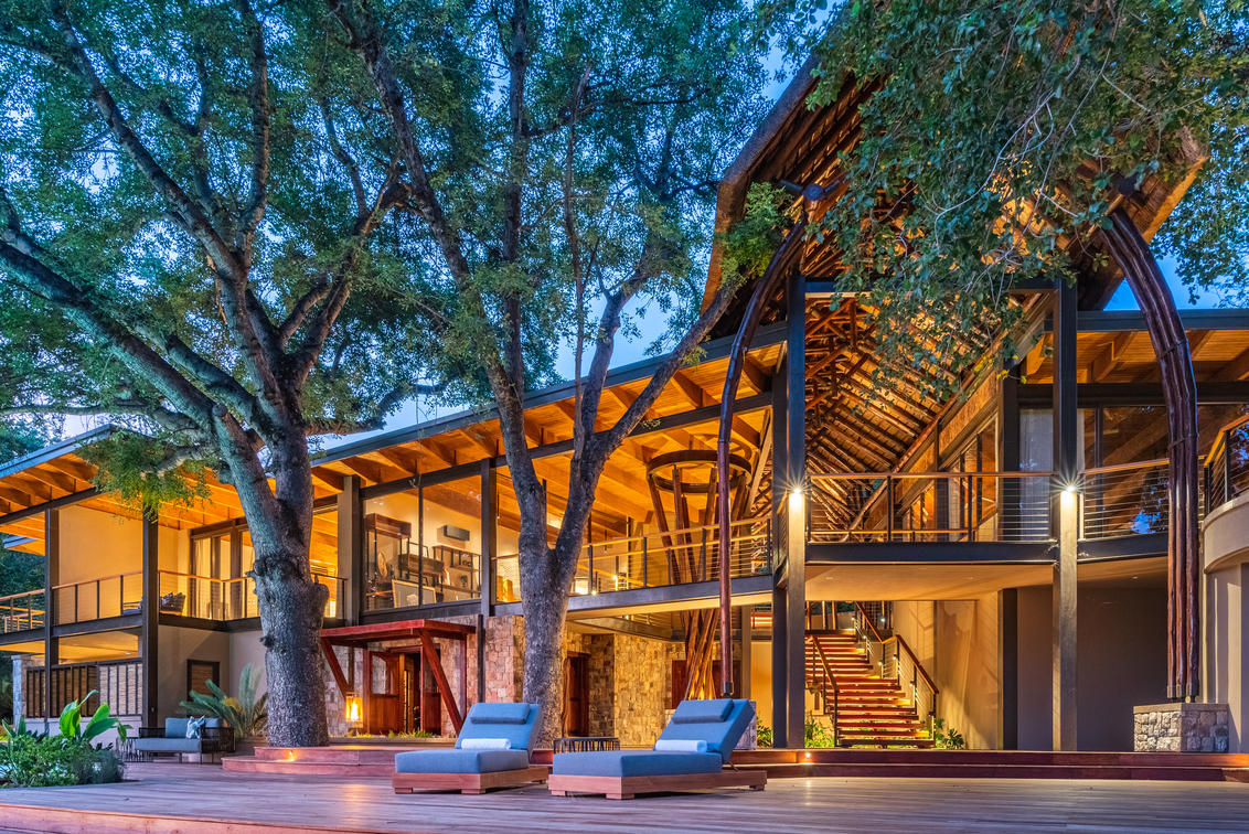 View from the river towards the lodge