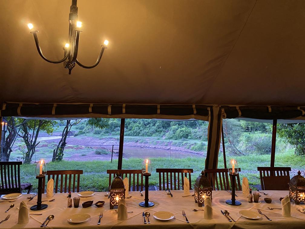 Camp DiningCredit: Sentinel MaraAt the centre of the camp with its amazing view are the well appointed dining and three lounge tents with an area where you can sit around the camp fire in the evenings. The perfect dining experience in the Masai Mara.  Whether in our dining tent watching hippo and crocodile in the river below, soaking up the untamed vistas during a bush breakfast or enjoying the romance of a starlit four course dinner you will have a fine dining experience. Delicious and varied meals from fresh food are prepared daily by our chefs.