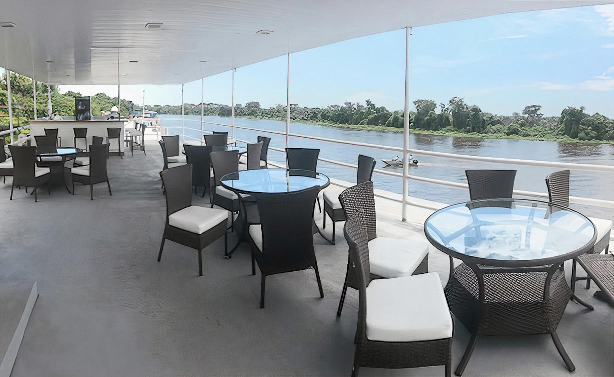 Third-floor deck at Jaguar SuitesThe third-floor deck of the Jaguar Suites provides a relaxing oasis for dining and wildlife observation, offering panoramic views of the Pantanal.