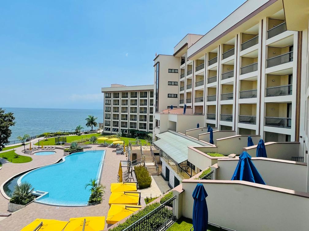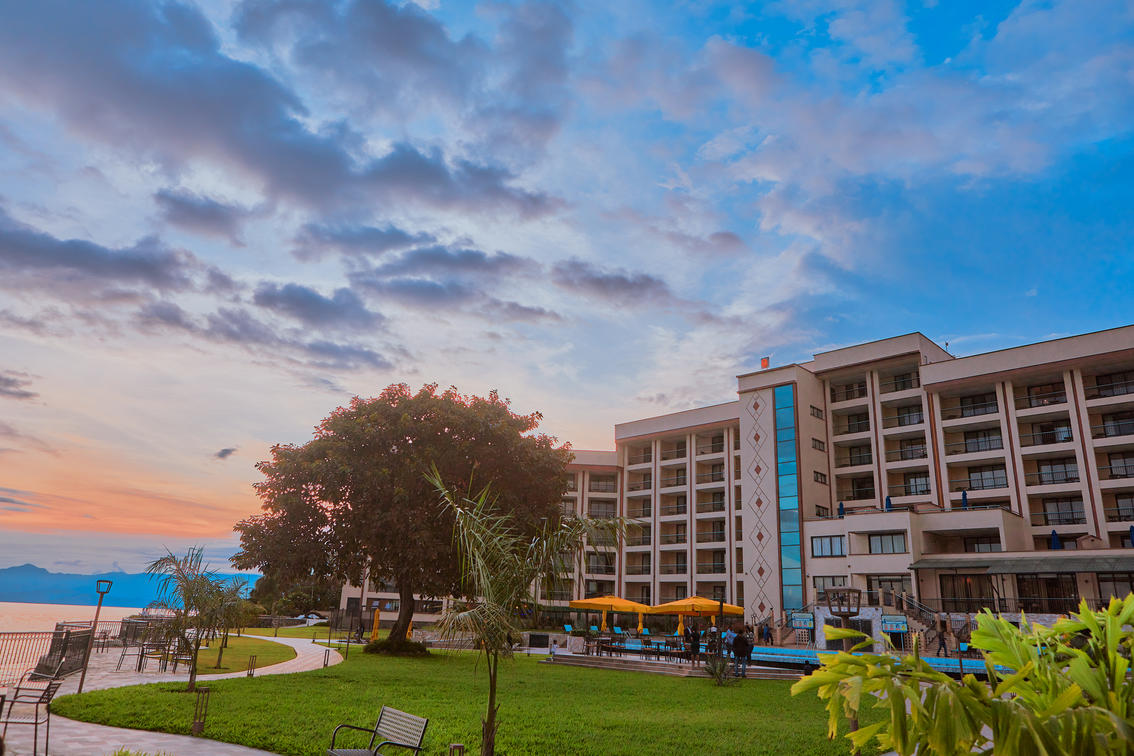 Goma Serena Hotel boasts a beautiful waterfront location and extensive gardens. The hotel's exterior features a tropical ambiance, an Olympic-size swimming pool, and stunning views of Lake Kivu.