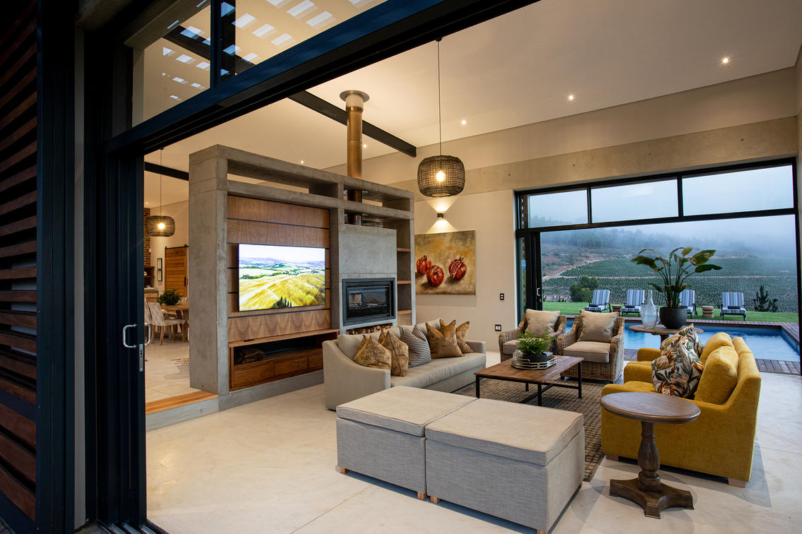 This intimate and modern boutique Villa is set on a working estate, offering guests the perfect winelands hideaway nestled among the vineyards. Here one can relax in pristine surrounds and appreciate the sights and sounds that are uniquely characteristic of our environment. To make your stay even more memorable, guests can enjoy the Taaibosch wines, which are made and crafted on the estate.