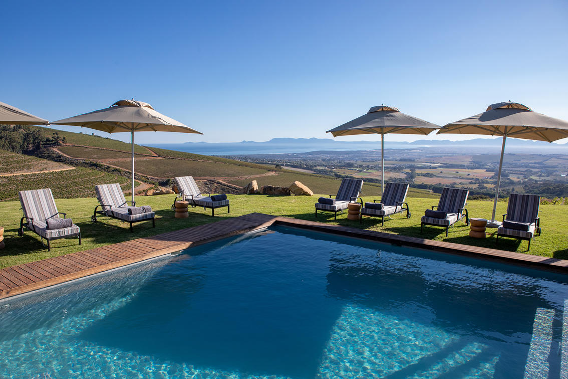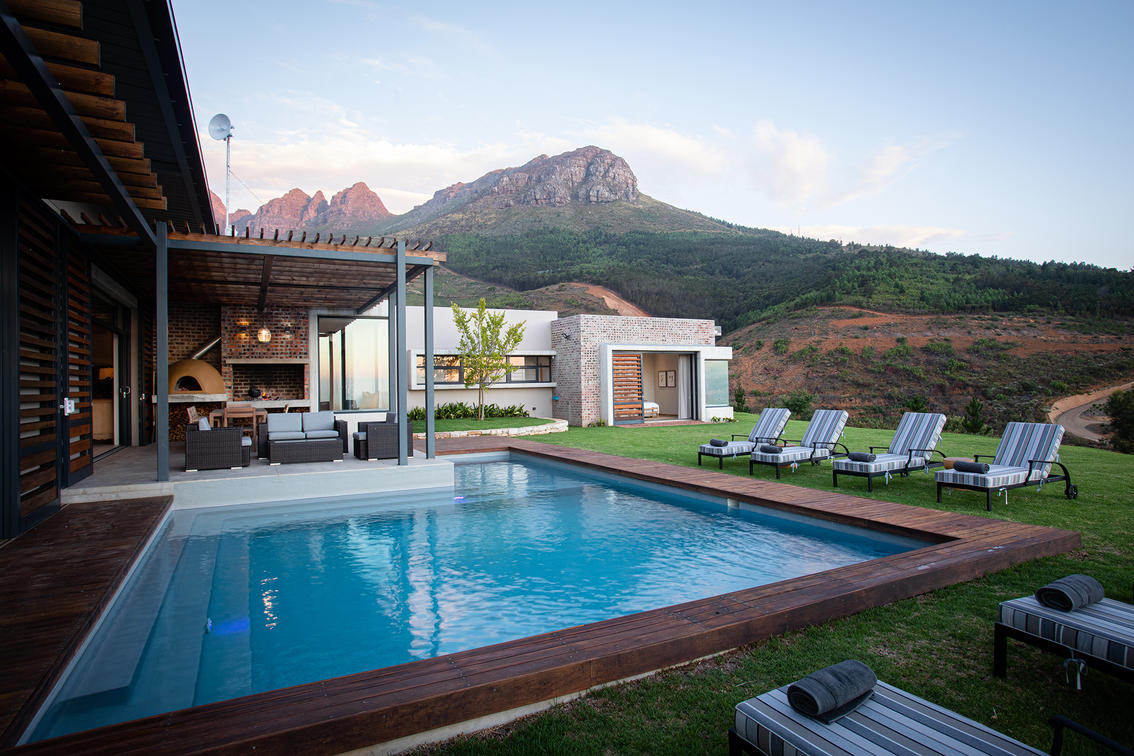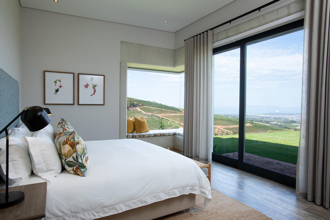 With panoramic views stretching to the horizon, Farsight Villa offers our guests uninterrupted and spectacular views of the Cape Peninsula. These include amongst others, the great Cape natural icons, False Bay, Cape Point and Table Mountain. This modern hilltop villa provides opulence and privacy, perfect for a group of friends or a family seeking an intimate break-away. Each bedroom is adorned with either a mountain vista or view of the Taaibosch vineyards and False Bay