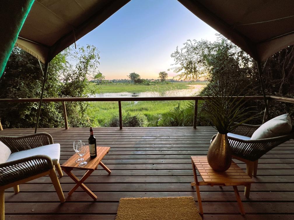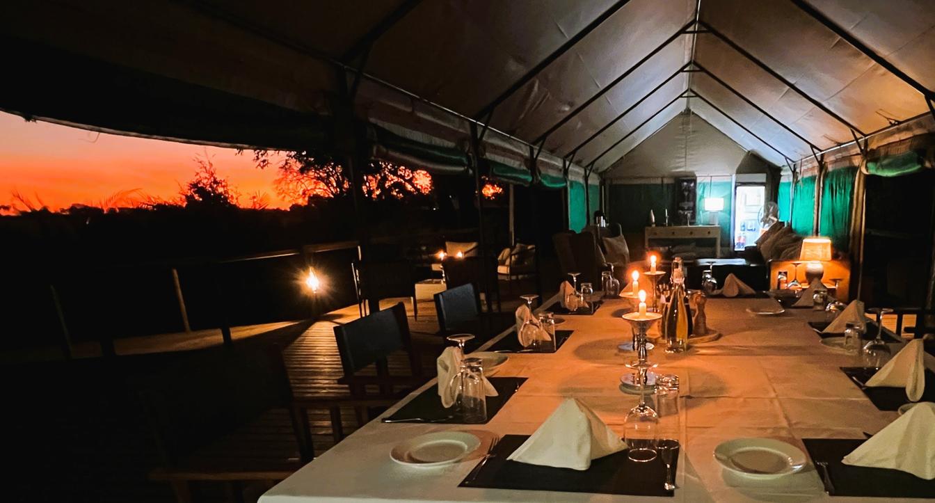The dining area at Setari is elevated and has extensive views of the magnificent sunsets over the floodplains beyond