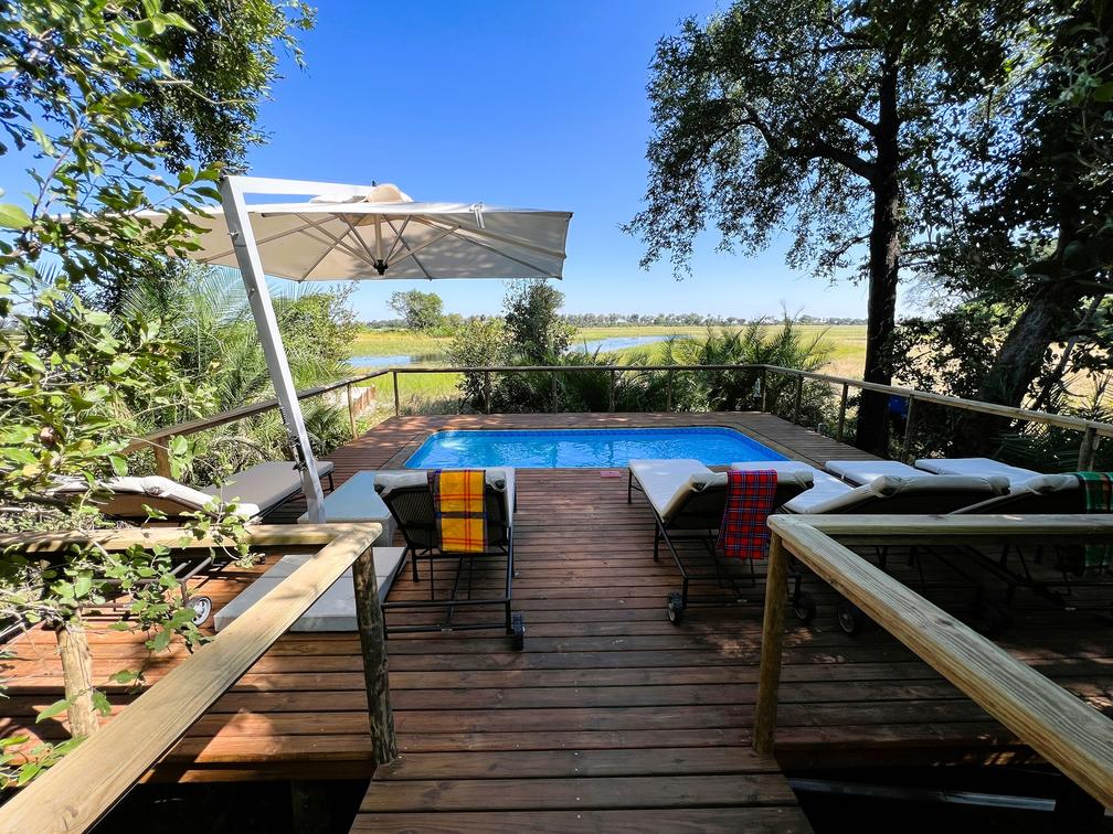 The pool at Kala Camp enjoys stunning views over the Delta beyond