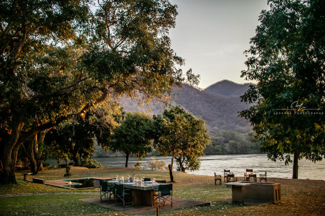 Nyamoumba River Lodge boasts great views of the Zambezi River with the picturesque mountains of the gorge in the backgrounds