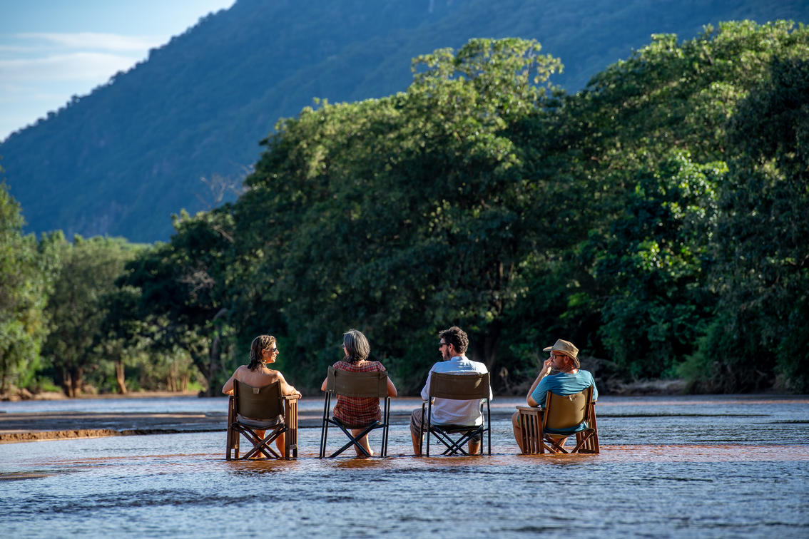 Escape eh sun with this shady beach restful space where guests can look out across the river bed and to the escarpment beyond.