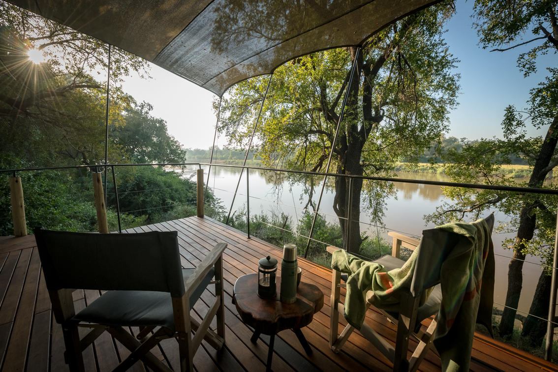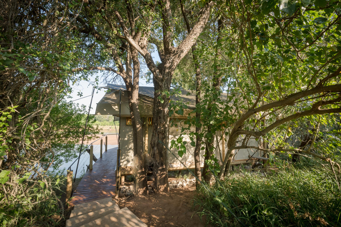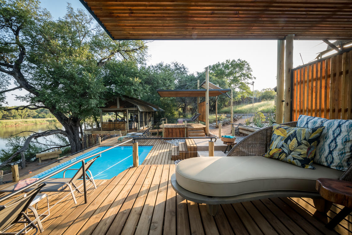 Perched on a gentle bend in the perennial Olifants River in the far north of the Balule Game Reserve