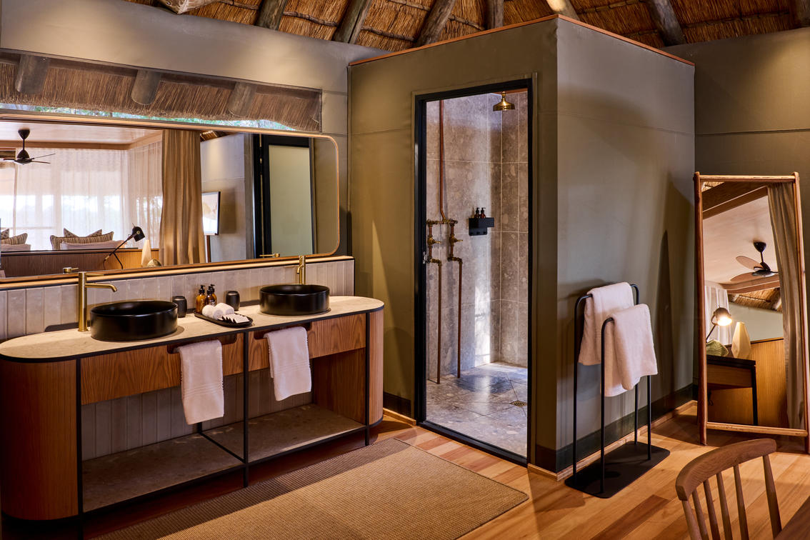 Savute Safari Lodge Guest Room Interior - Vanity and Shower