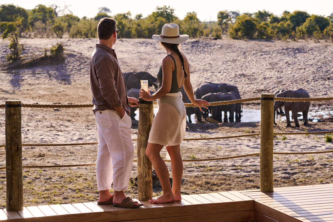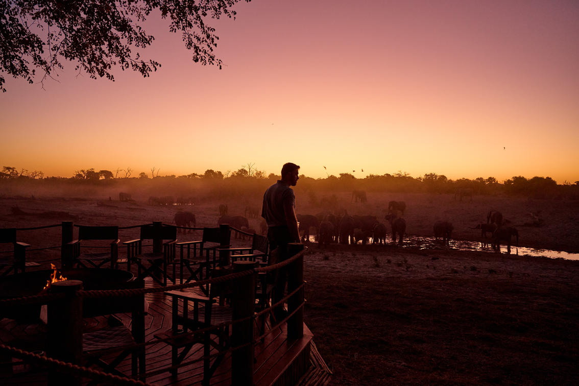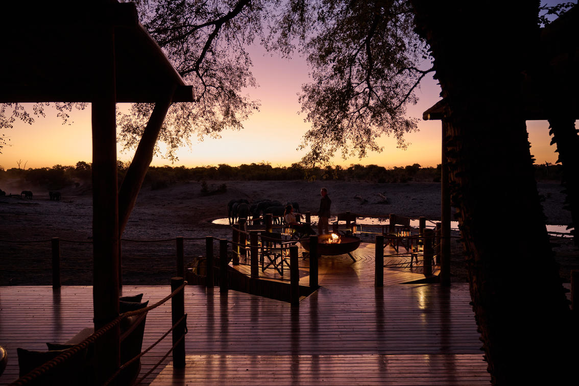 The fire deck at Savute Safari Lodge overlooking the waterhole and Savute Channel