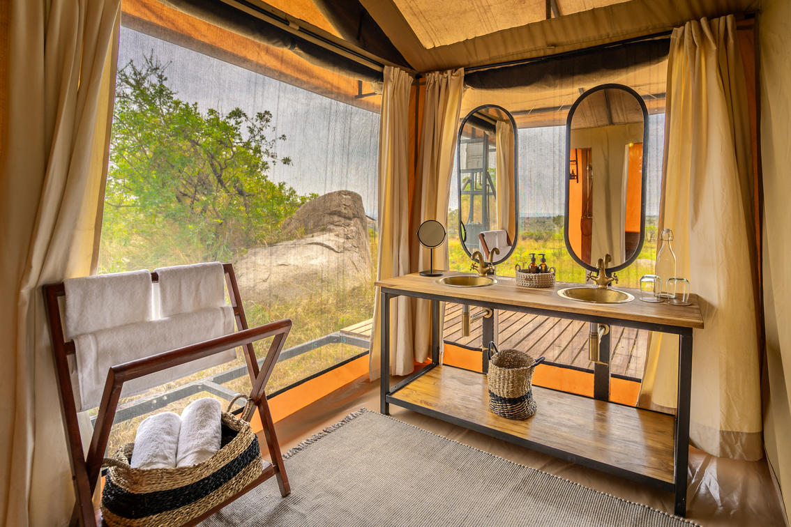 Each tent includes an en-suite bathroom with exhilarating outdoor showers and ample storage space.