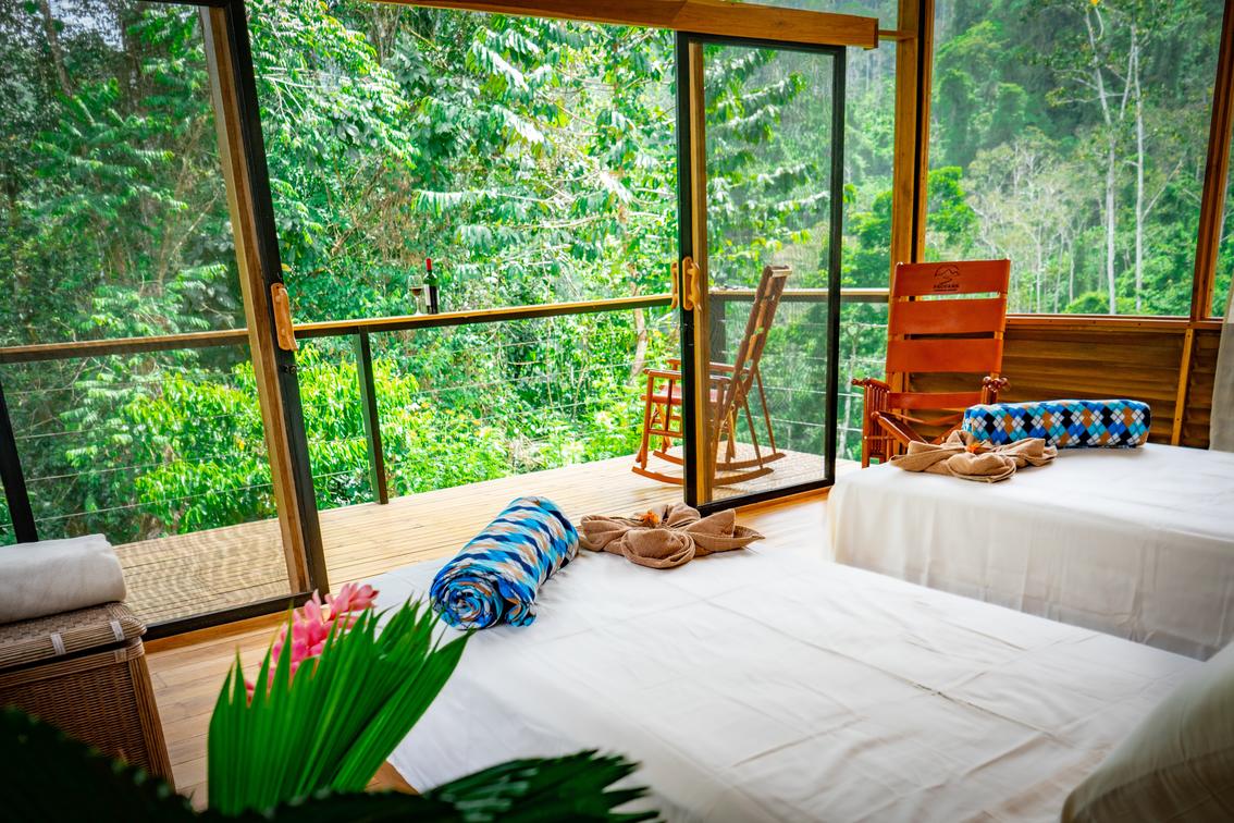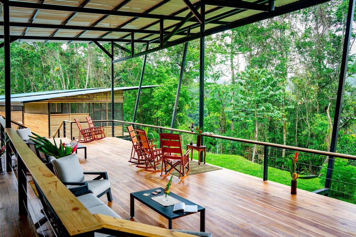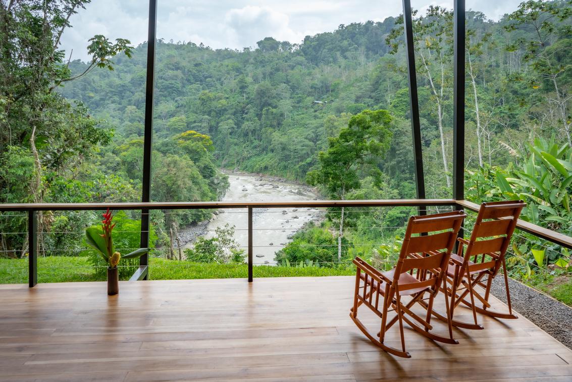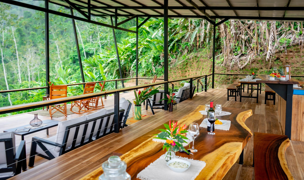 The main guest area is an open area, two tiered deck with views of the Pacuare River.