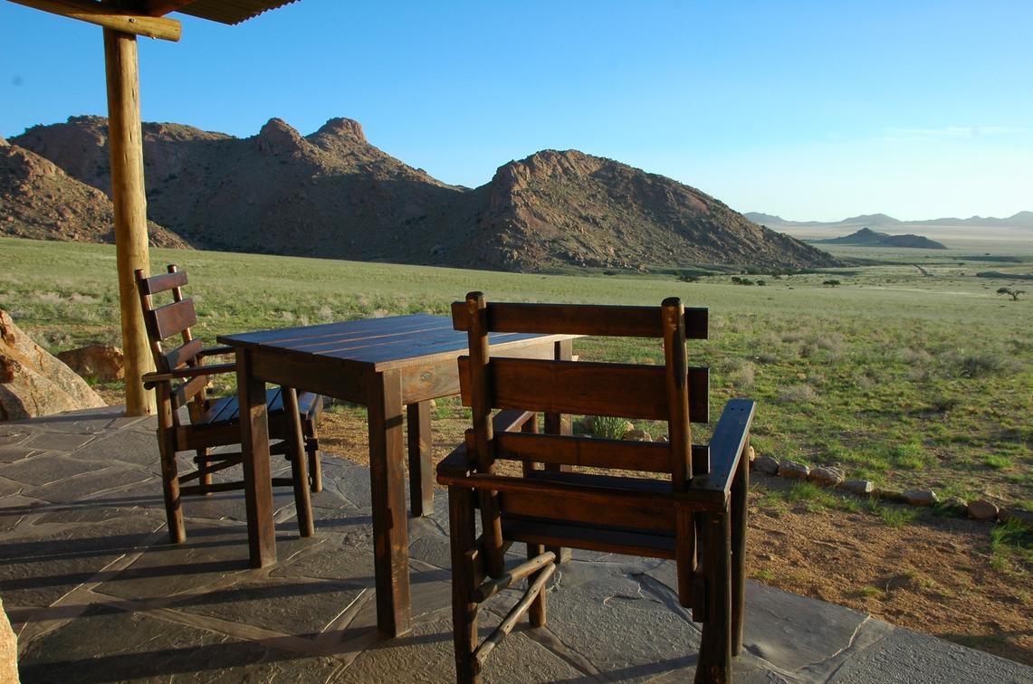 The chalets are nestled against a mountain slope and afford unique views of the boundlessness of the desert.