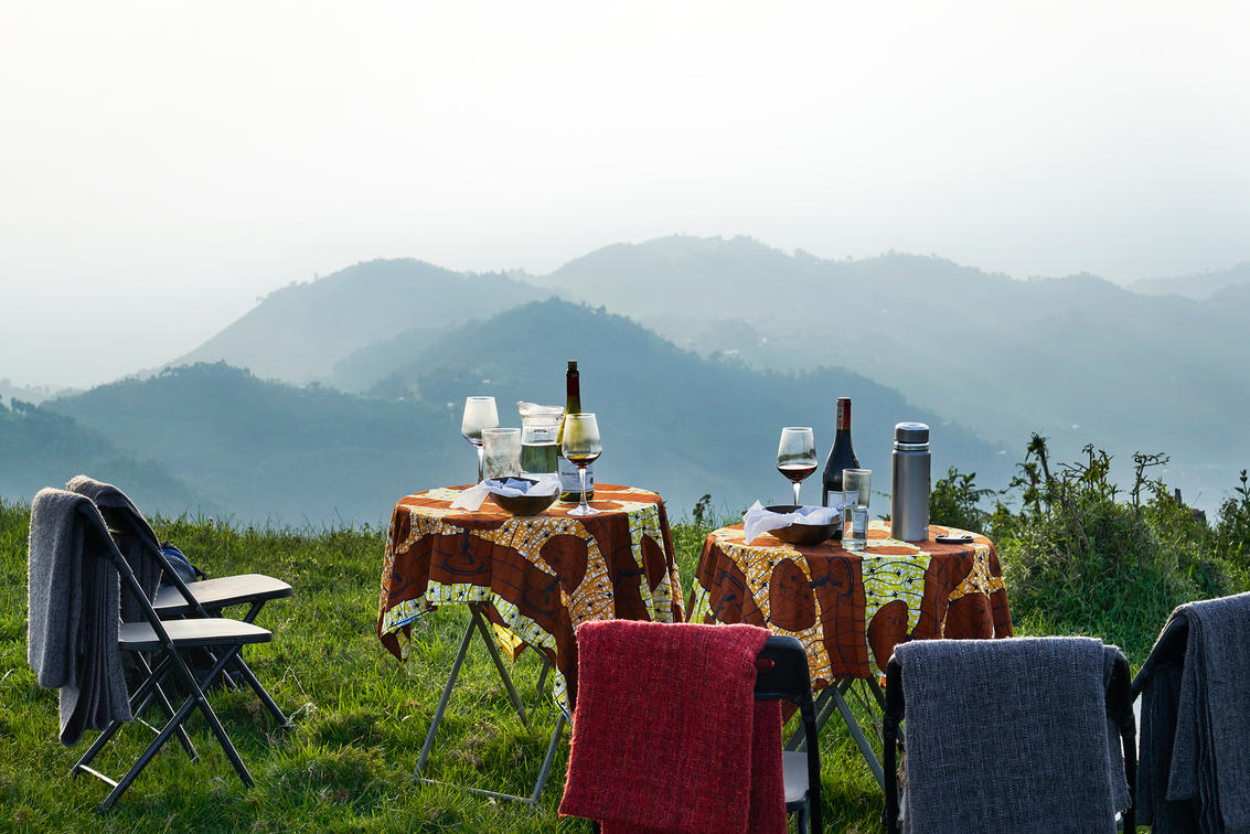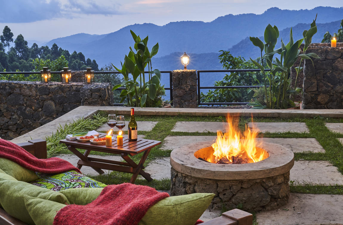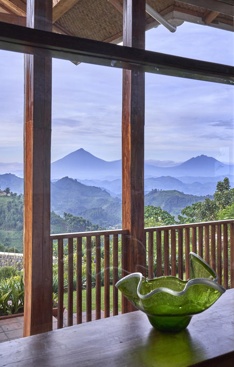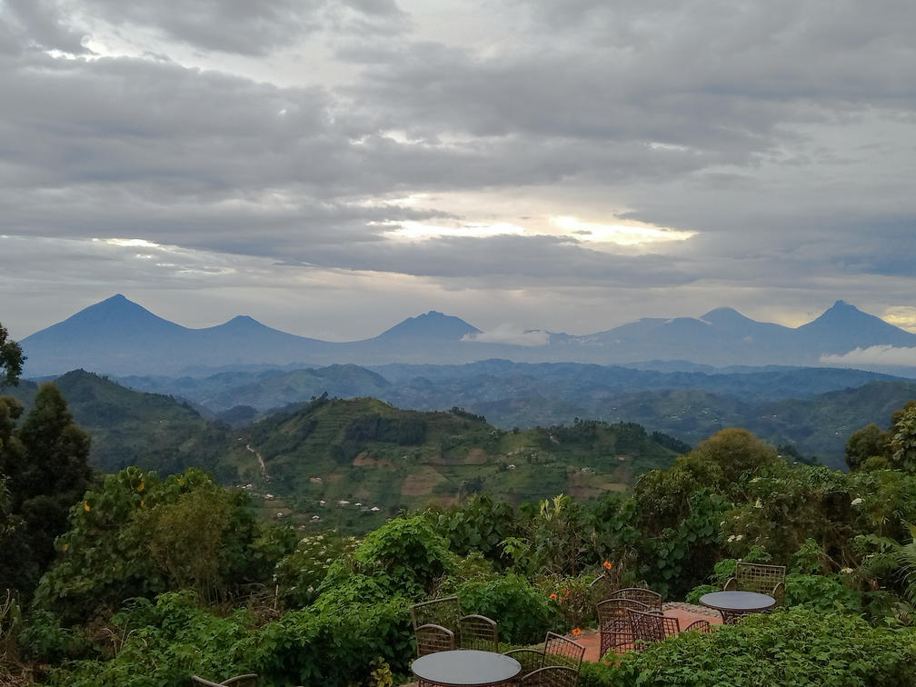 From the lounge, you can see all the Virunga Volcanos lined up like chase pieces