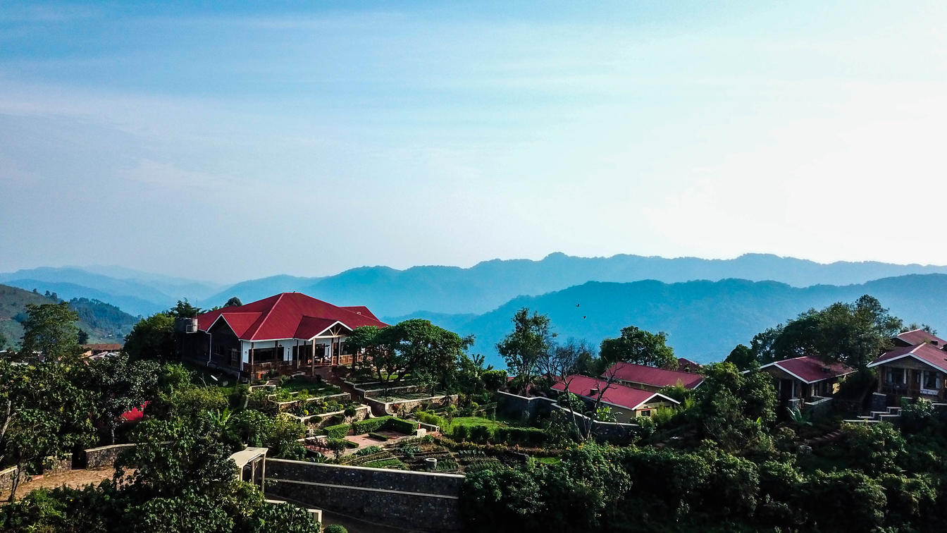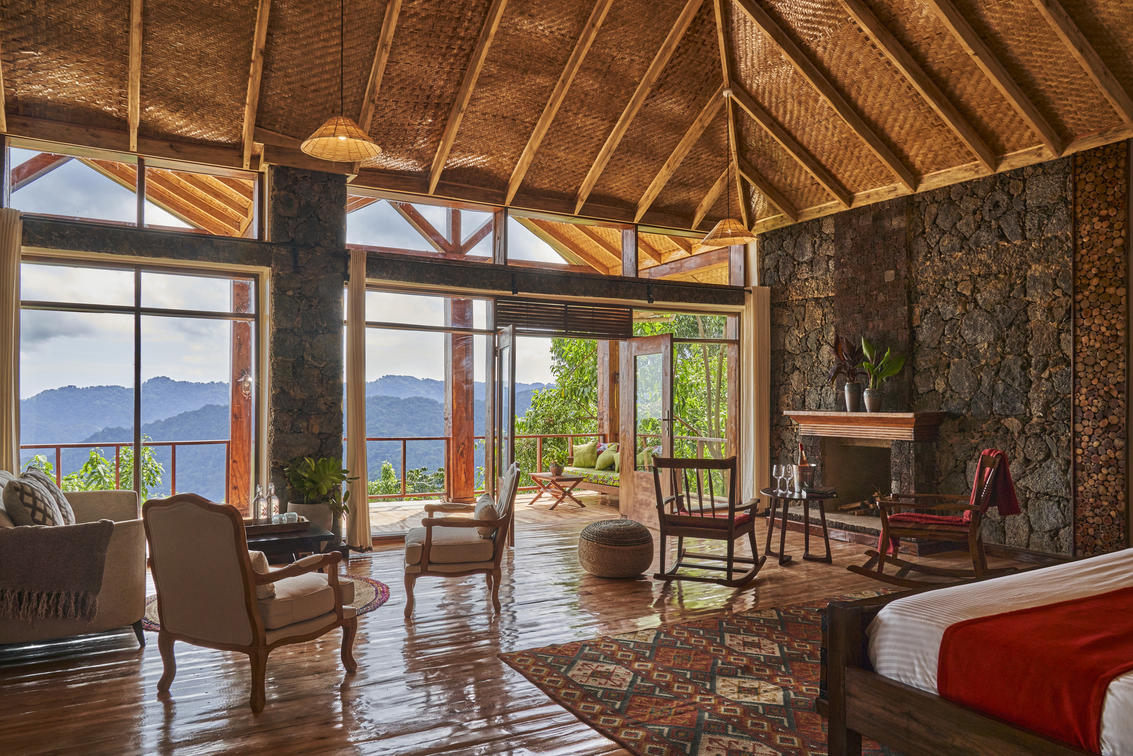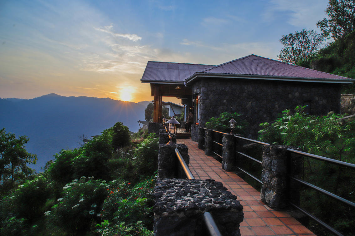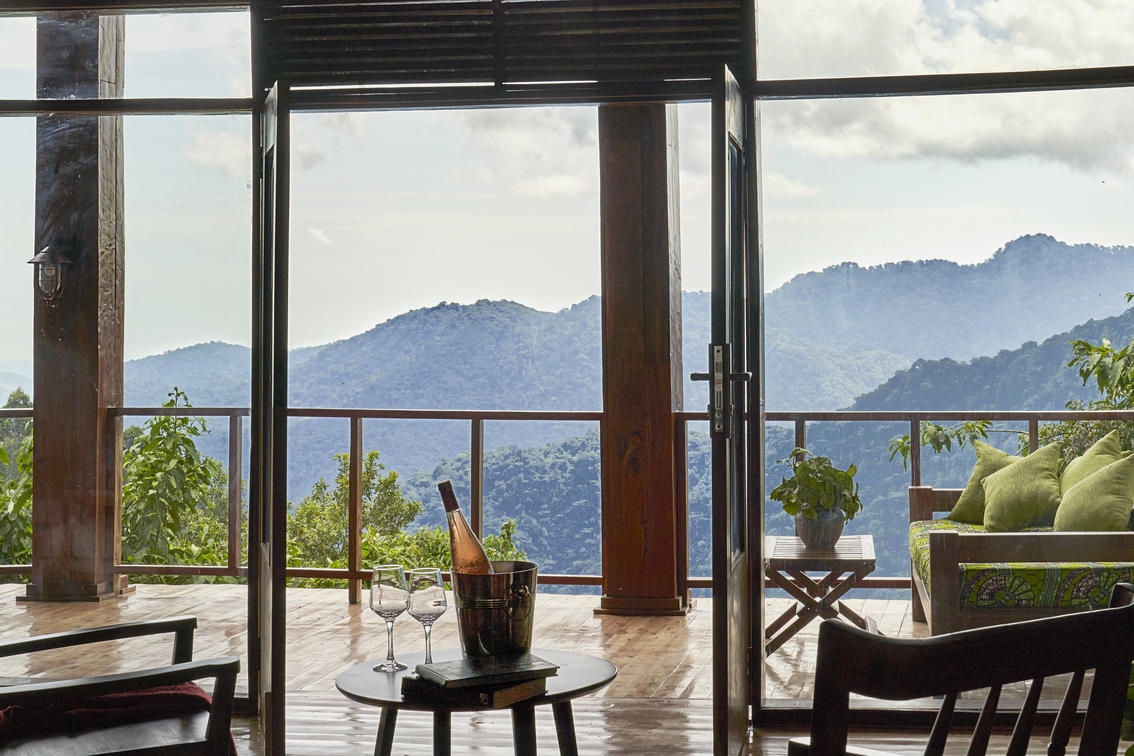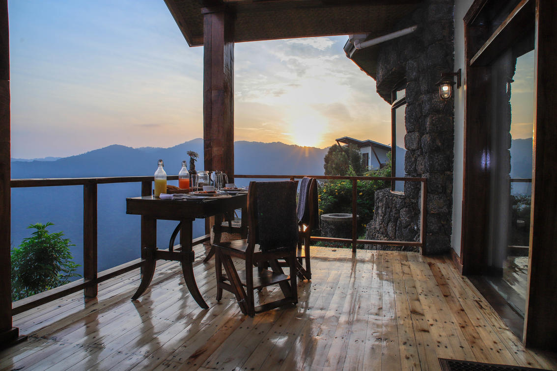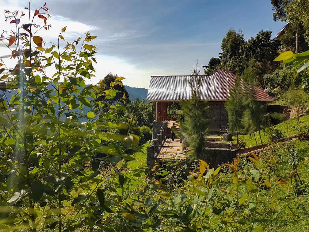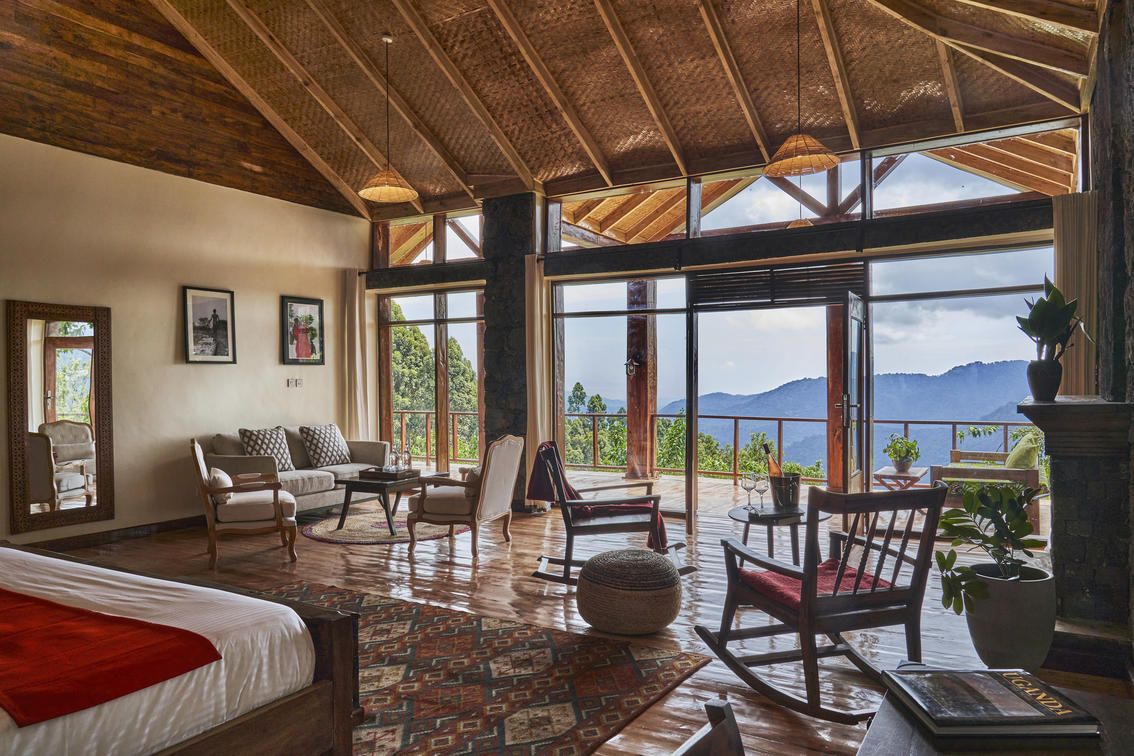 View of the Virungas from the inside of a Deluxe Garden Cottage