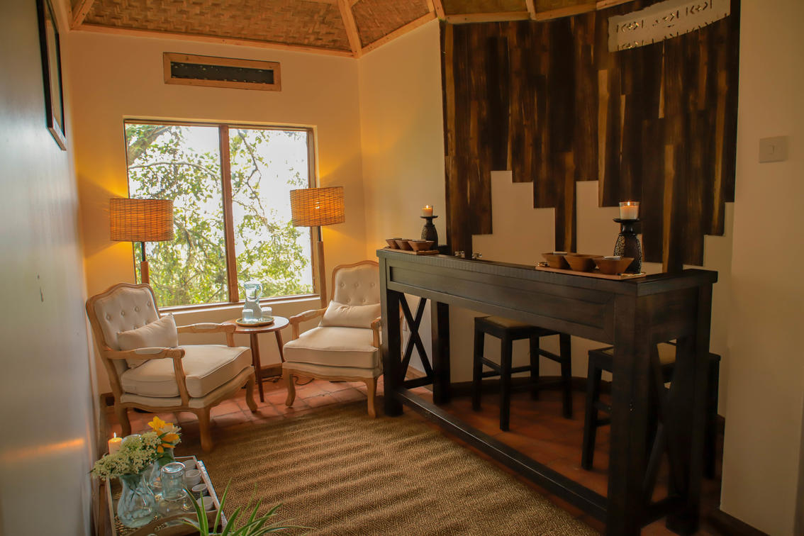 We harvest all the water we use on the property from rain using the roofs and it's stored in underground tanks and purified before supplying it to the entire lodge