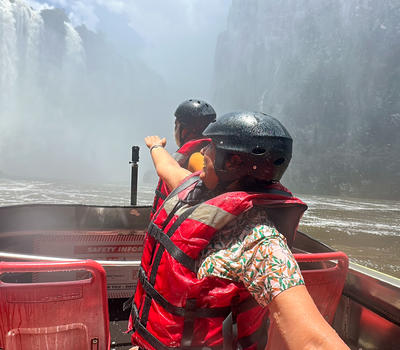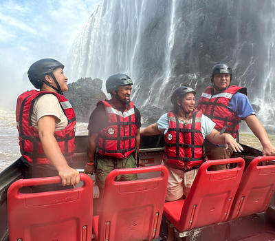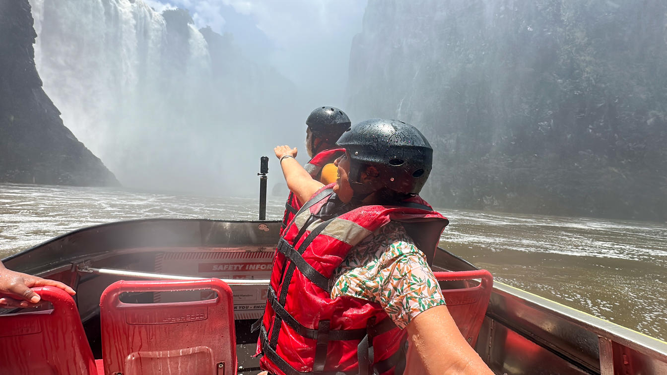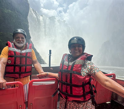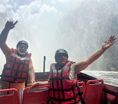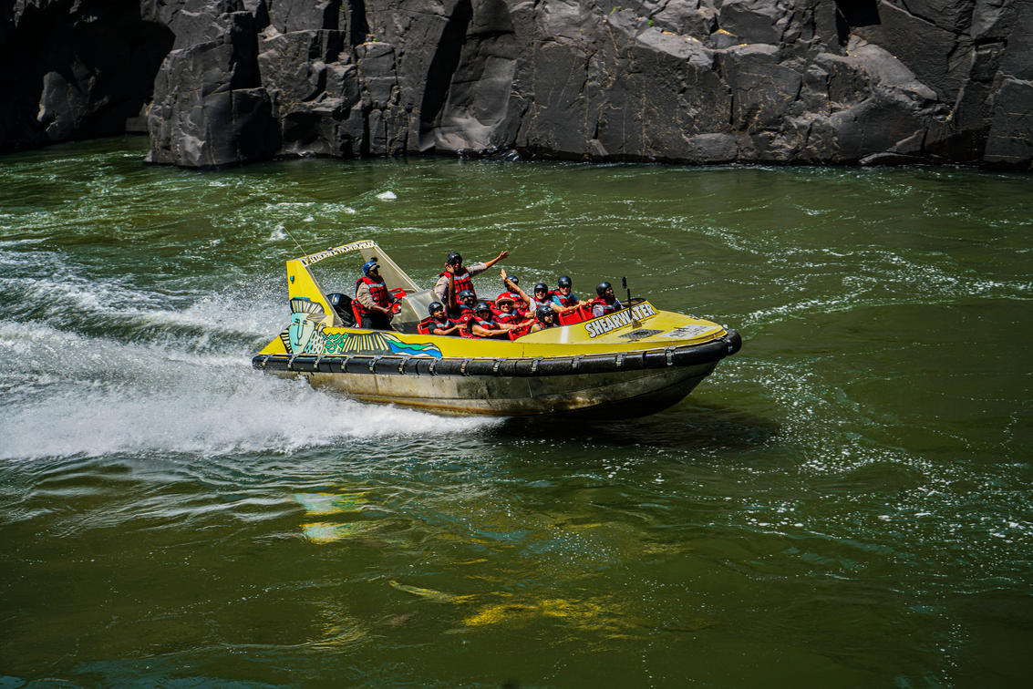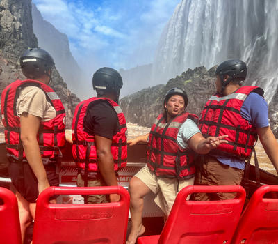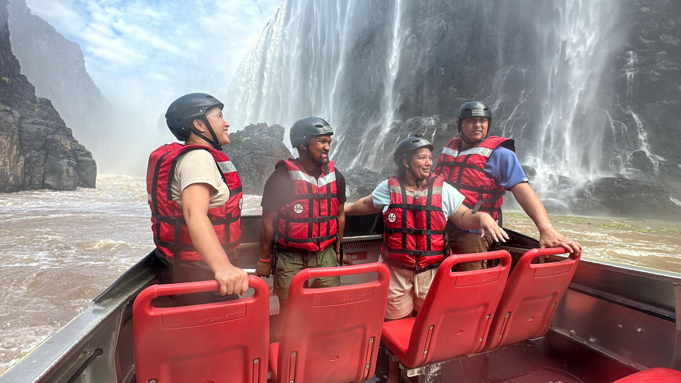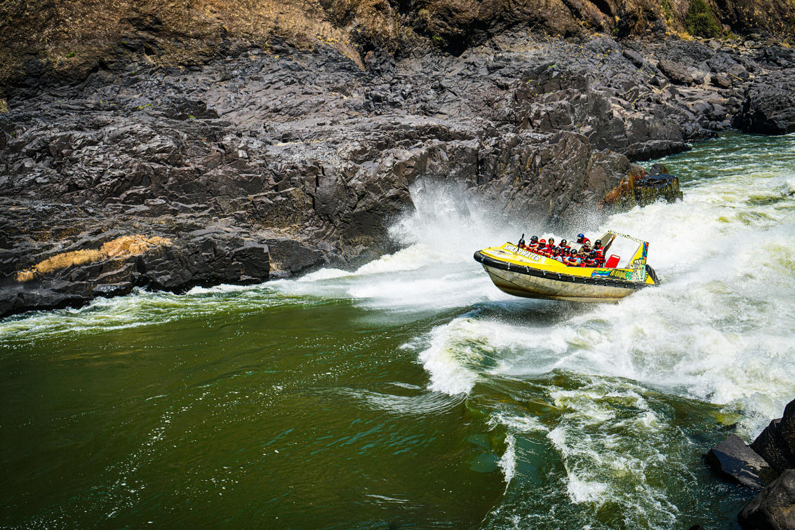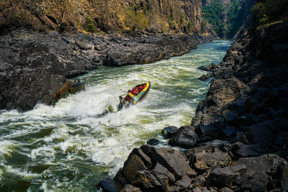 Experience the thrill of navigating the Zambezi River's rapids and encountering Victoria Falls up close on our Adventure Jetboat.