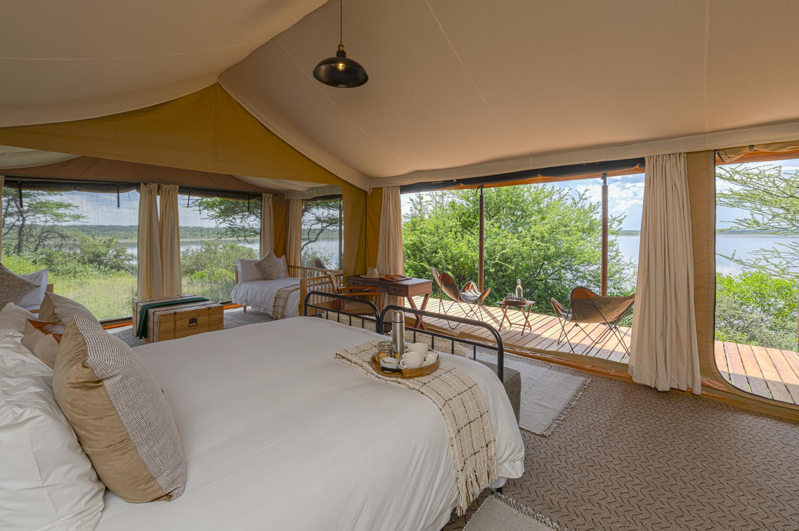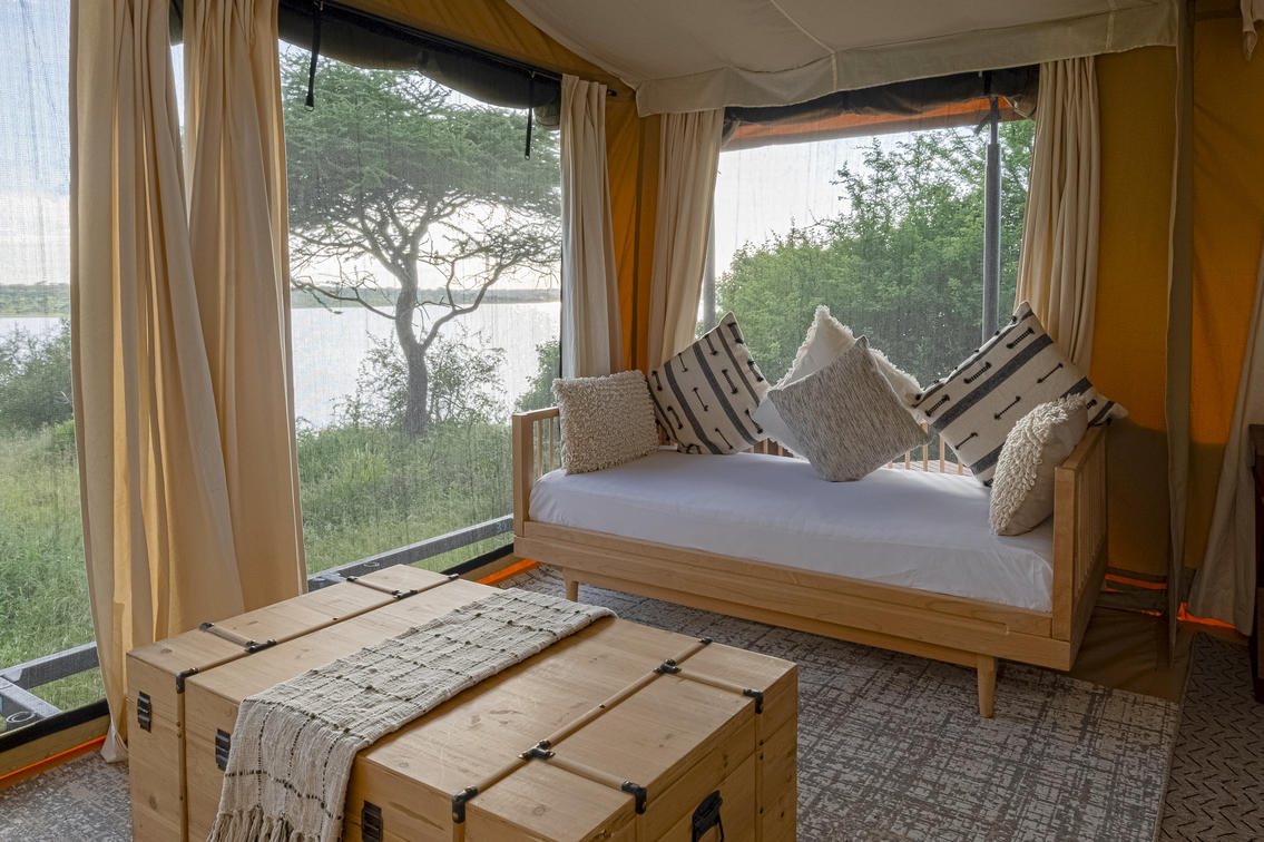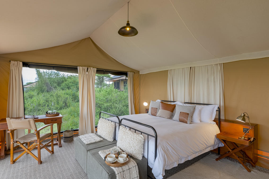 Luxury safari tents have a king-sized bed (which can be convert