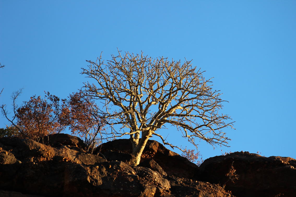 Rock formations through dry trees