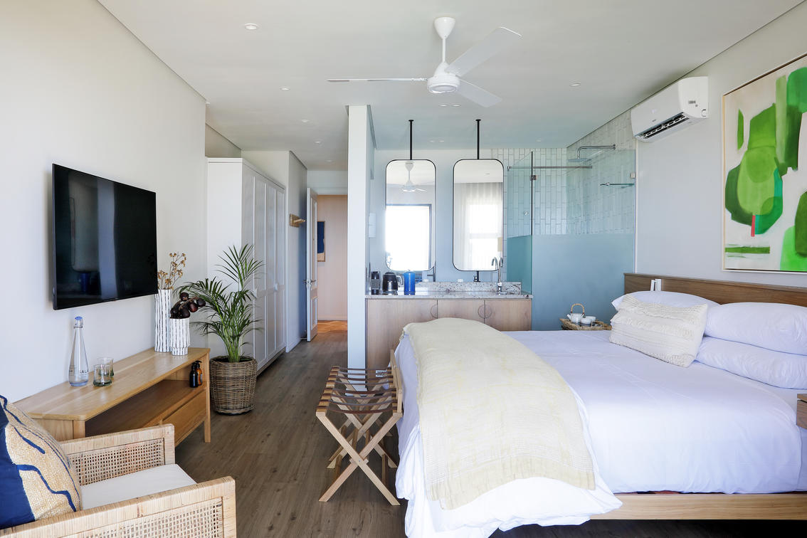 The Ocean View rooms offer extra length king size beds, full luxurious bathrooms and 180 degree ocean views