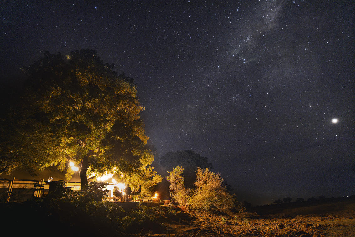 Under a canopy of stars, the main area at Little Mana Sands glows softly with lantern light and campfire warmth. Evenings here are about quiet conversation, connection to the wild, and the unforgettable magic of the African night sky.