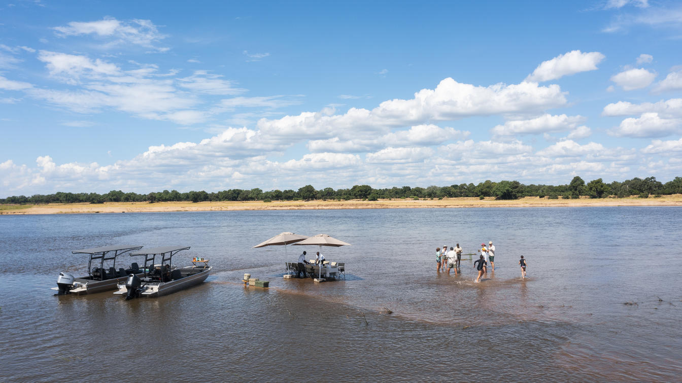 Tucked into the blue ribbon of the Zambezi and cradled by the golden shores of Mana Pools, our sandbank picnics feel like something out of a dream. With the escarpment rising on one side and endless river views on the other, guests can splash in the shallows before settling in for lunch or a G&T in the sunshine — feet in the water, eyes on the horizon, and not another soul in sight.