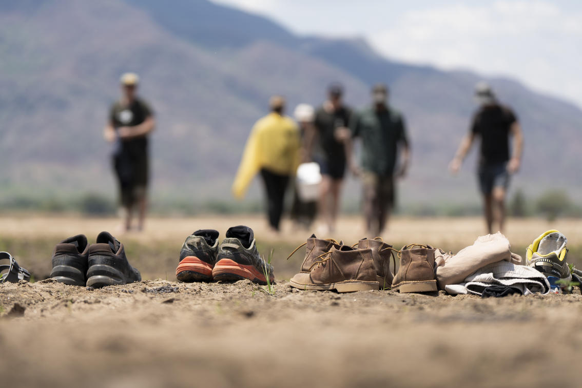 This wasn’t a scheduled walk, just one of those spontaneous moments — a sundowner stop that turned into a barefoot wander down to the river. No boots, no vehicles, no rush. Just guests, guides, and the golden hush of Mana Pools.