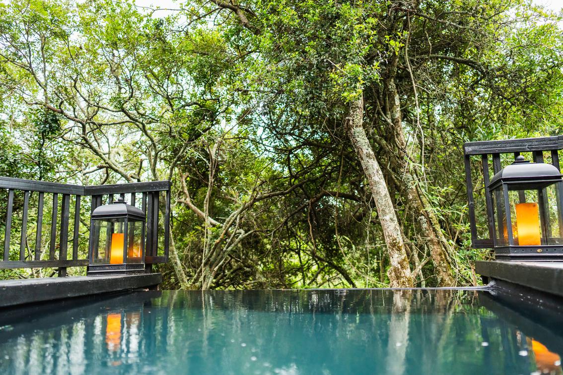 The main lodge overlooks a waterhole popular with hippo, elephant and other game.