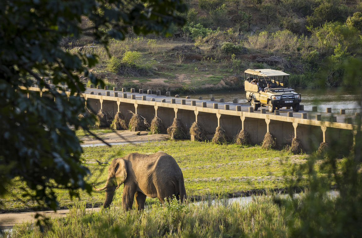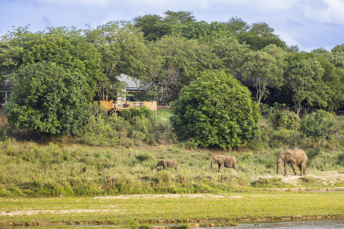 Elephants in front of main area