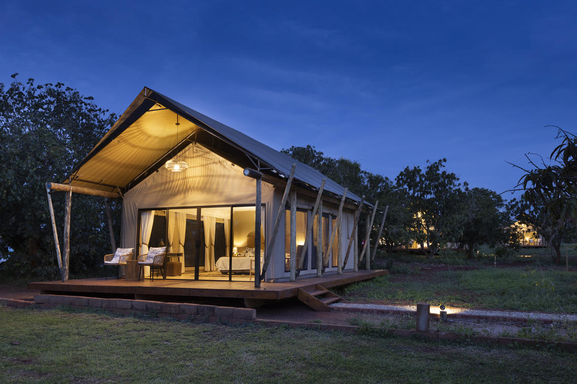 Luxury tent by night