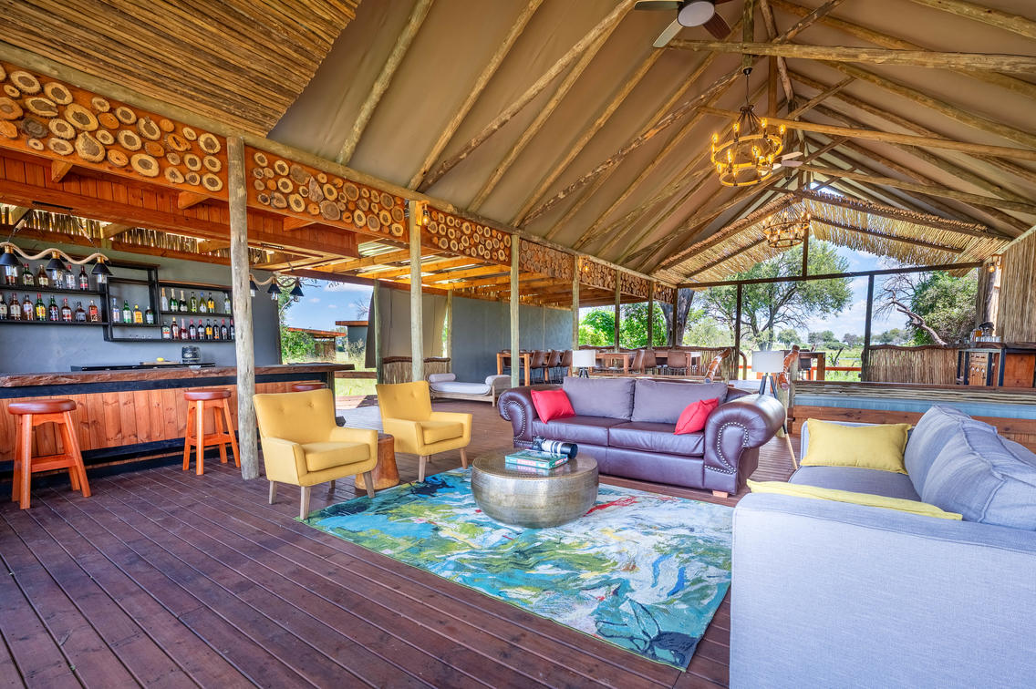 An open veranda with cozy seating overlooks one of the lagoons, providing a tranquil space to relax and take in the surroundings. On the opposite side, a traditional boma area offers the perfect setting for intimate fireside evenings under the stars. Additionally, a well-stocked curio shop showcases a variety of locally crafted arts and souvenirs, while the on-site office serves as a hub for travel arrangements and guest services.